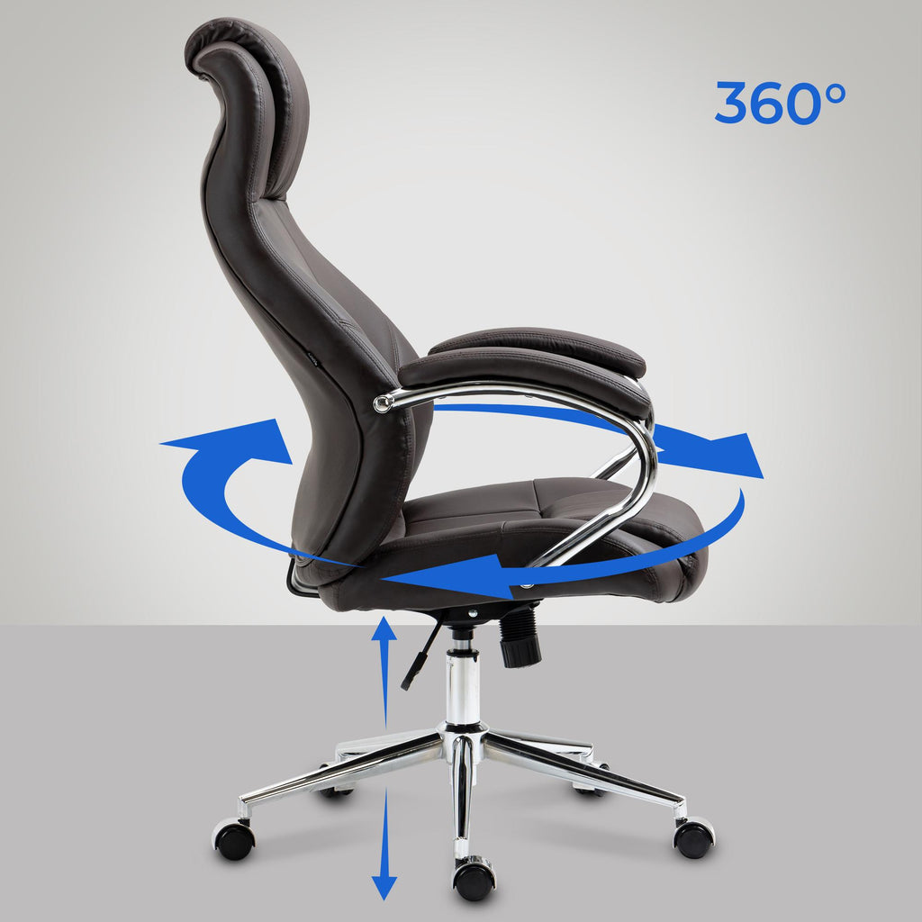 Le fauteuil de bureau est particulièrement confortable, notamment grâce à son assise généreusement rembourrée et revêtue d'un véritable cuir de haute qualité aussi