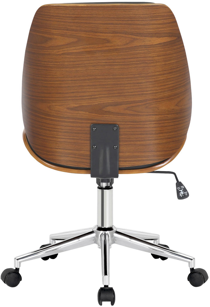 Fauteuil de bureau sur roulettes pivotante et réglable design moderne synthétique noir bois et métal chromé BUR10682
