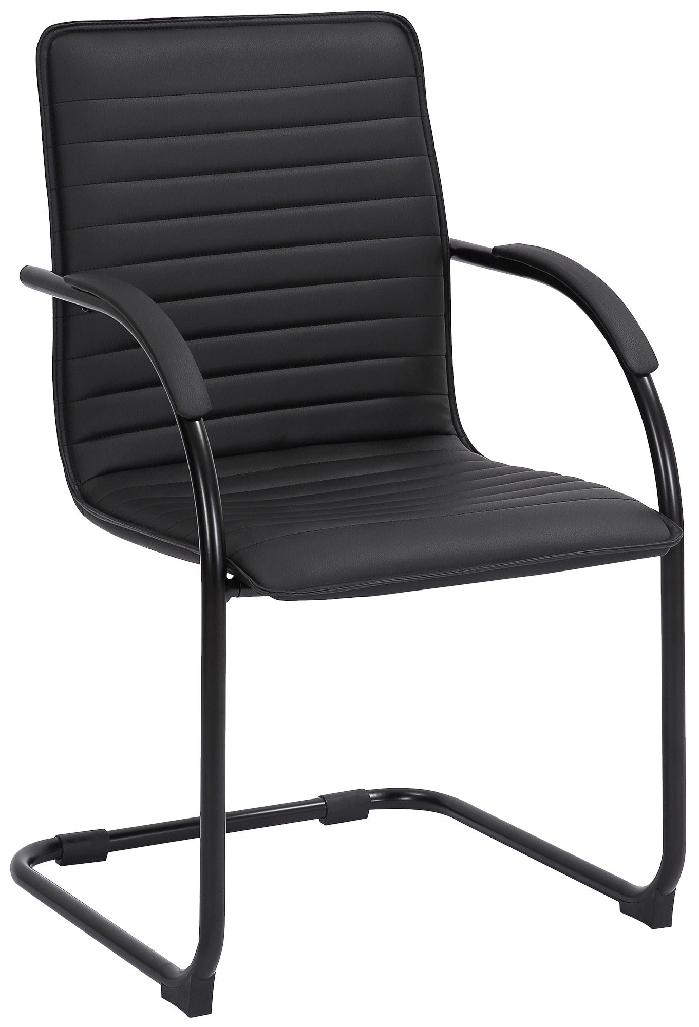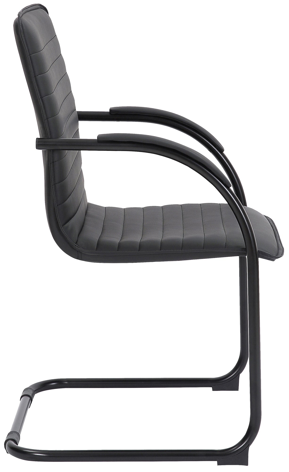 Chaise visiteur fauteuil de bureau avec accoudoirs assise en PVC noir piètement luge métallique noir 10_0003421