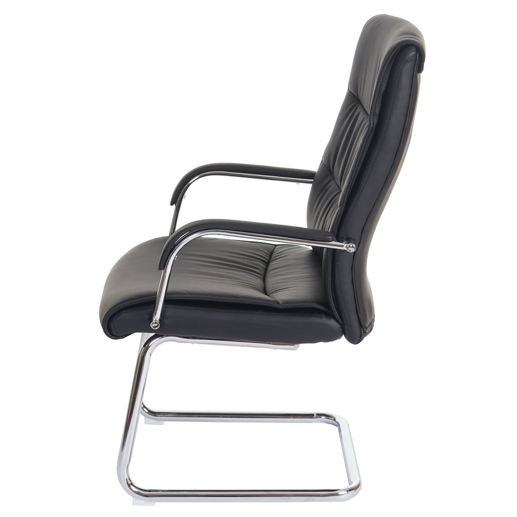 Fauteuil de bureau sans roulettes chaise de conférence avec accoudoirs en PVC noir 04_0001927