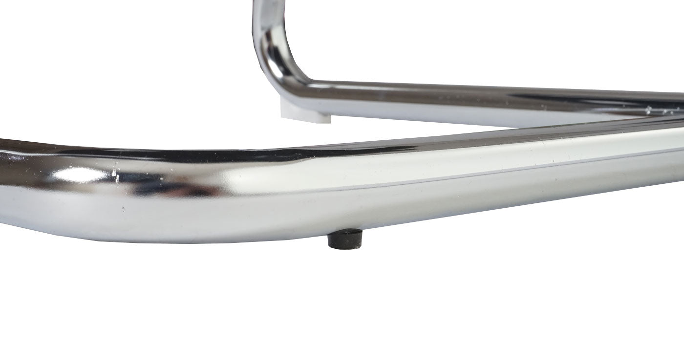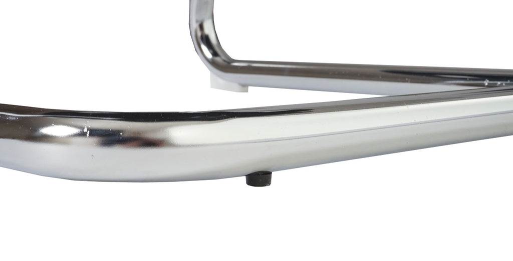 Les coutures décoratives sur le dossier donnent à ce fauteuil un petit quelque chose en plus. Le tout est complété par son piètement chromé, qui assure une position stable et fait de ce siège de conférence un véritable accroche-regard.