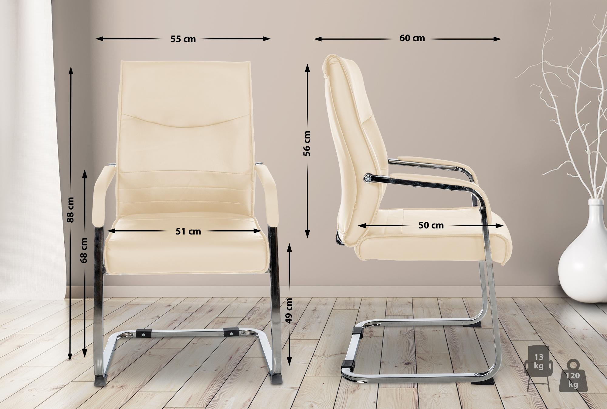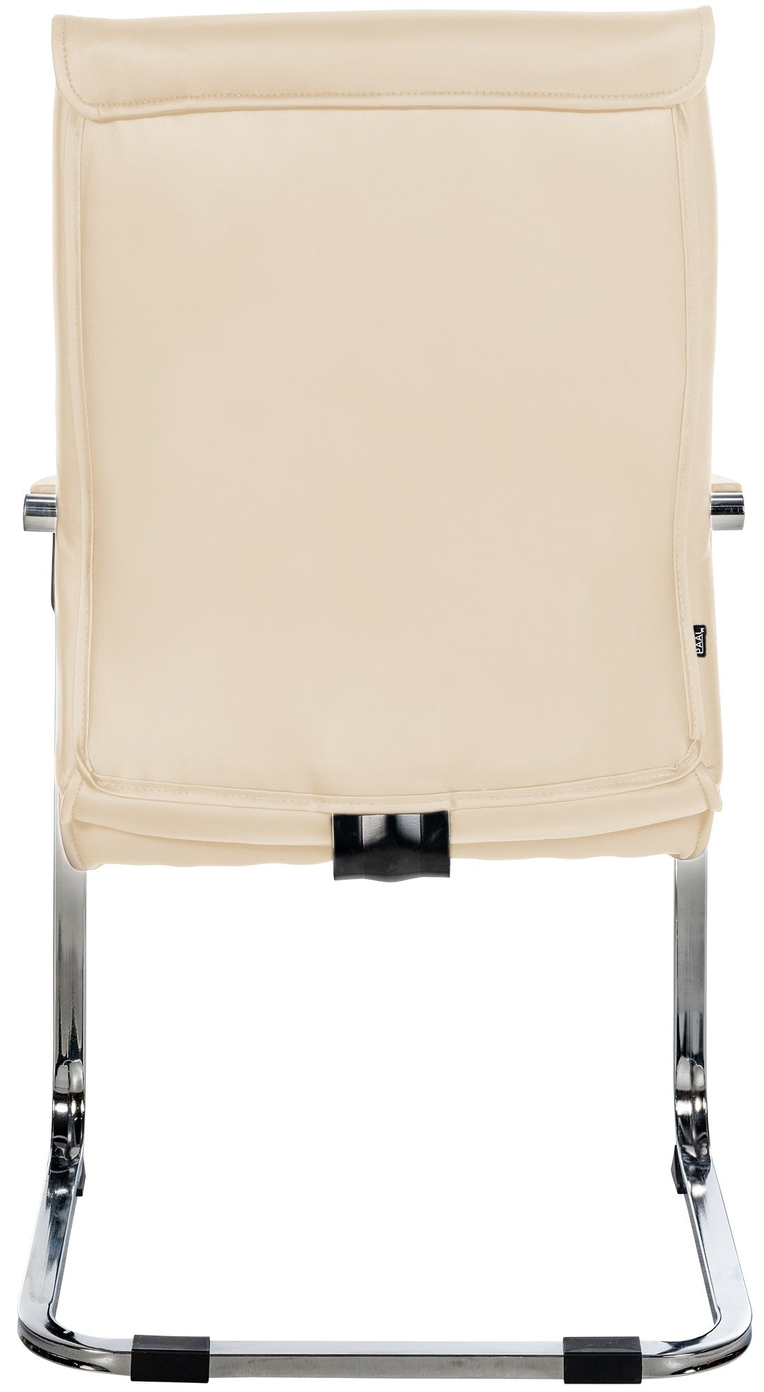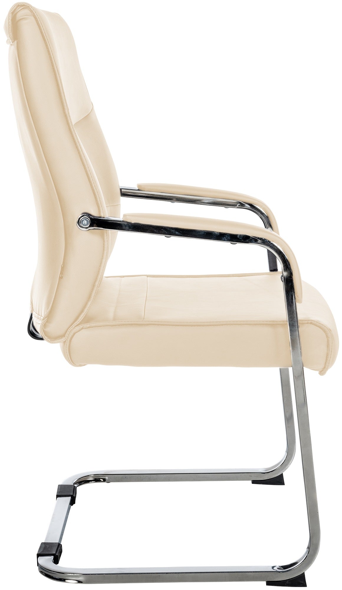 Lot de 2 fauteuils de bureau chaises visiteur sans roulettes piétement luge en métal chromé et assise en PVC crème 10_0003095