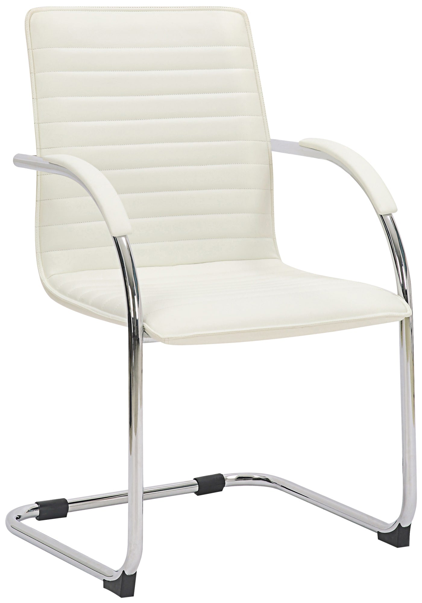 Set de 2 chaises visiteurs accoudoirs en PVC blanc piétement luge en métal chromé 10_0003121