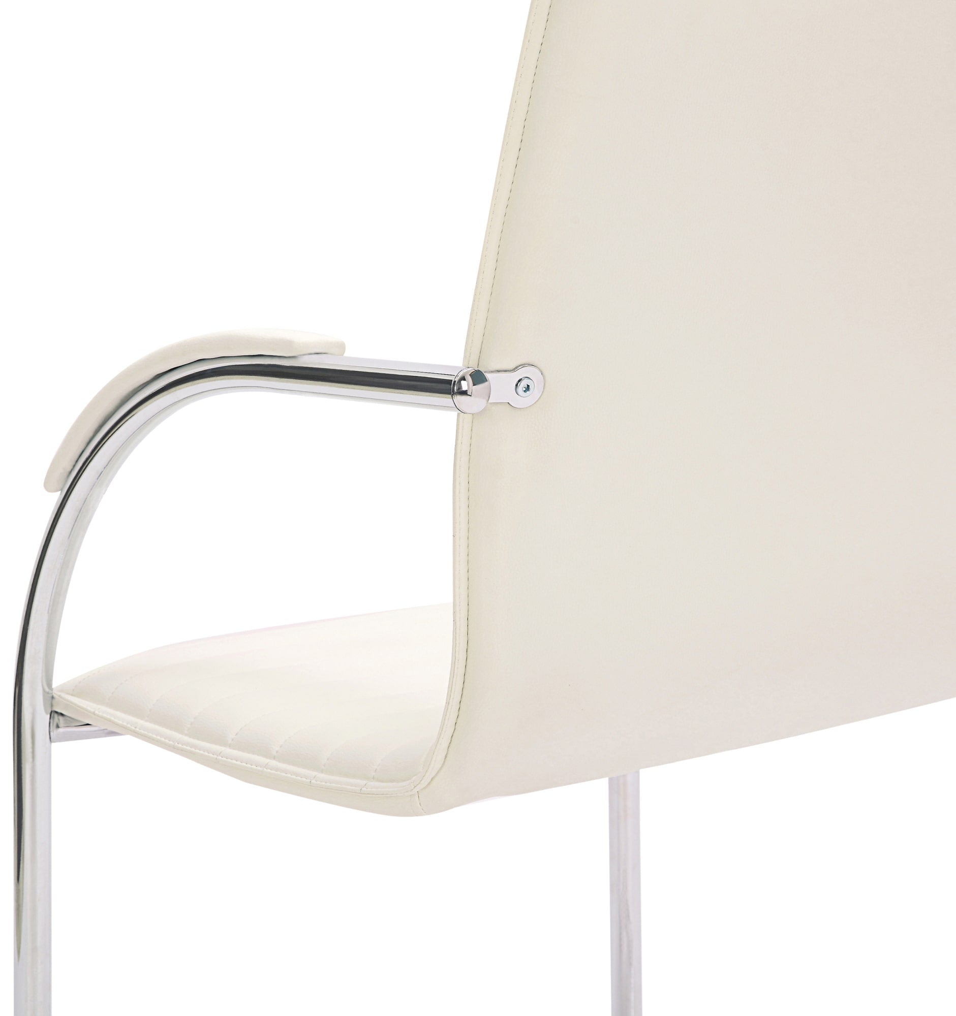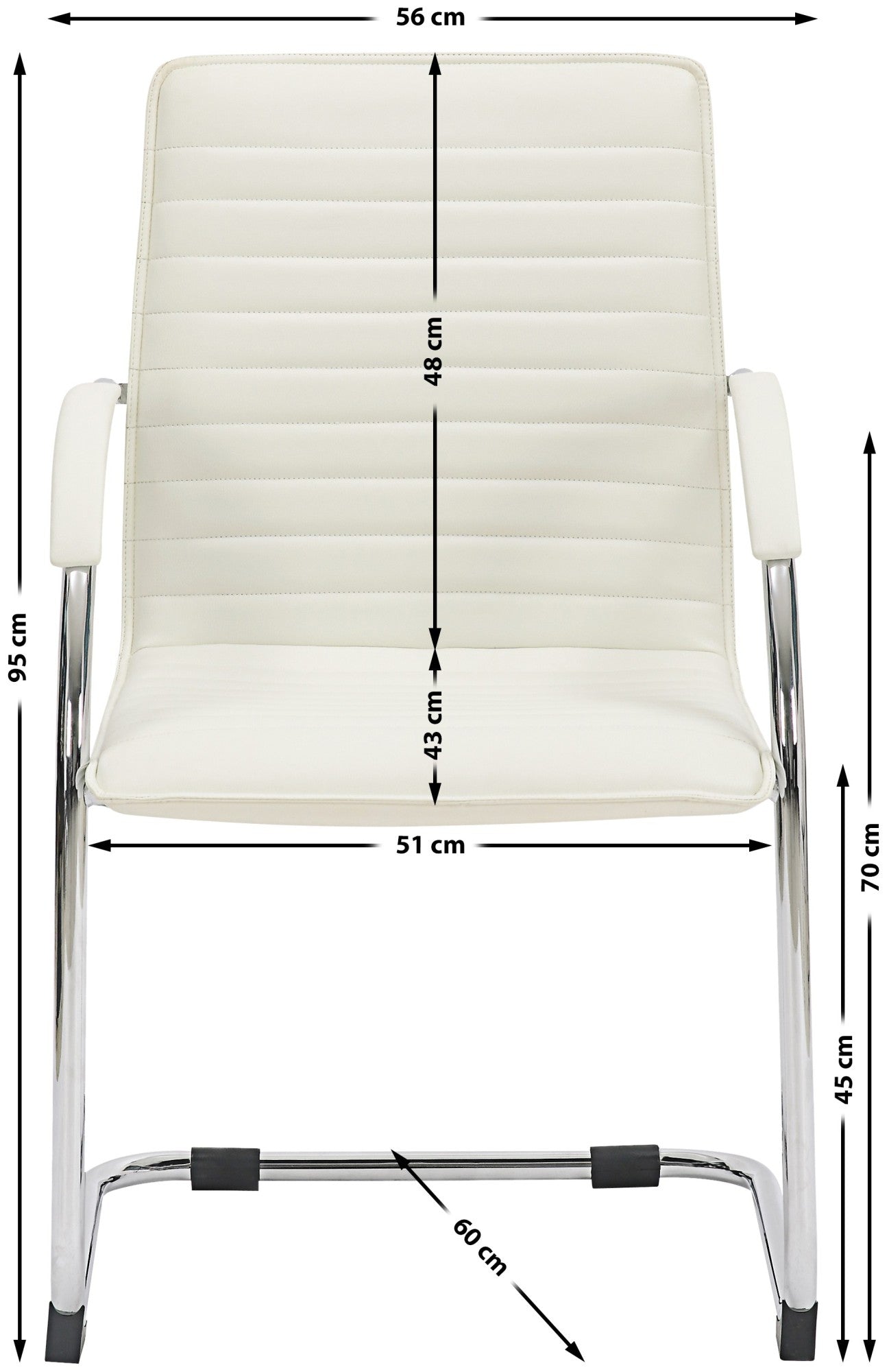 Ces chaises à piétement luge sont recouvertes de similicuir et leur structure métallique. L'assise ainsi que les accoudoirs sont rembourrés. Le piètement dispose de quatre protections de sol qui empêchent de rayer le sol. Les chaises s'adaptent à la plupart des intérieurs et des locaux. Non seulement dans le salon ou le bureau, mais aussi dans les salles d'attente et les salles de travail, ces chaises pivotantes conviennent parfaitement.