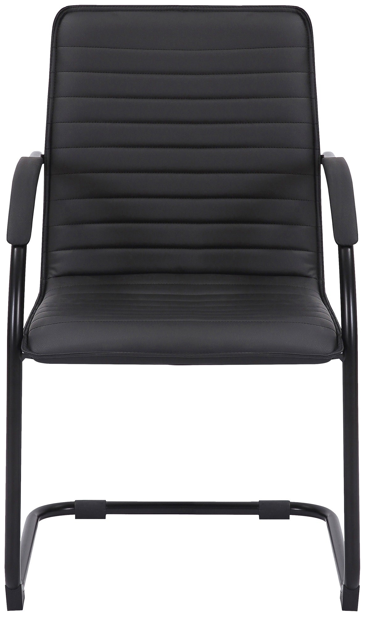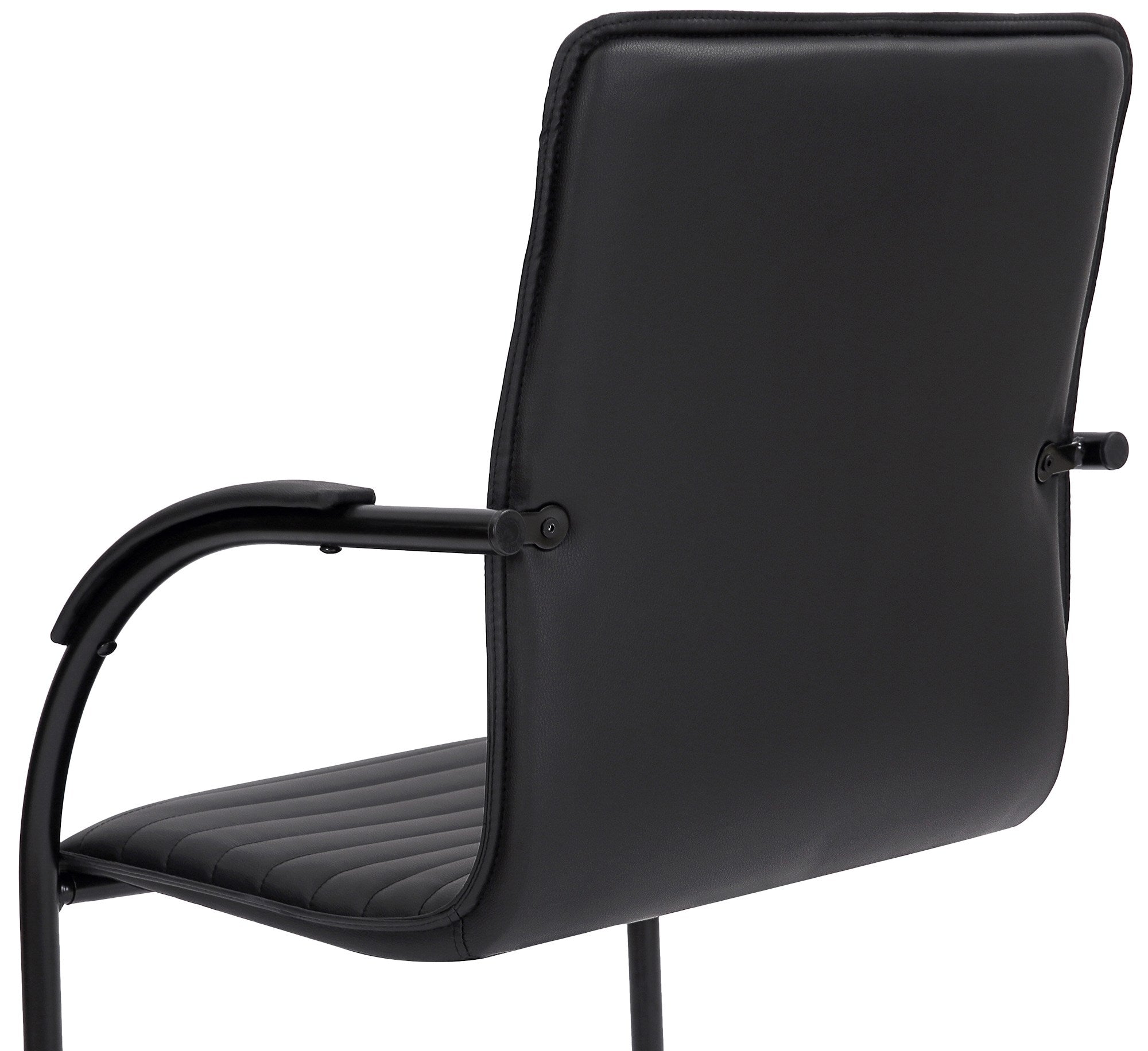 Set de 2 chaises visiteurs accoudoirs en PVC noir piétement luge en métal noir 10_0003123