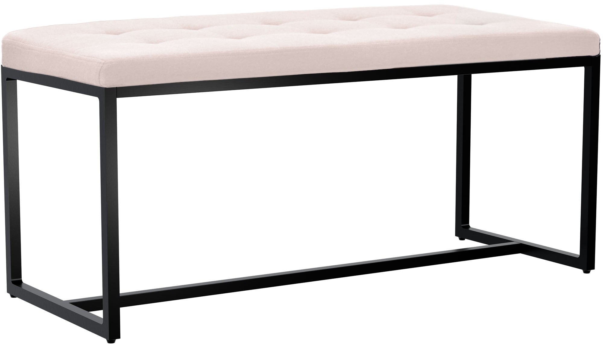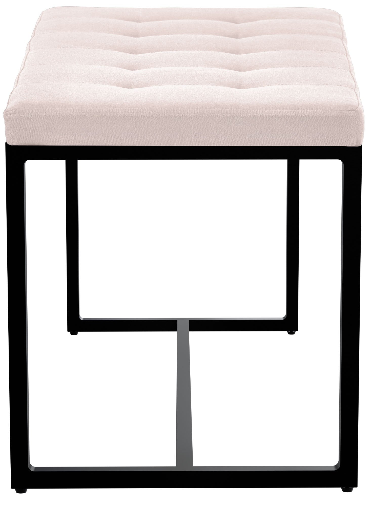 Banc d’entrée contemporain largeur 100cm à structure en métal noir assise capitonnée en tissu crème 10_0006157