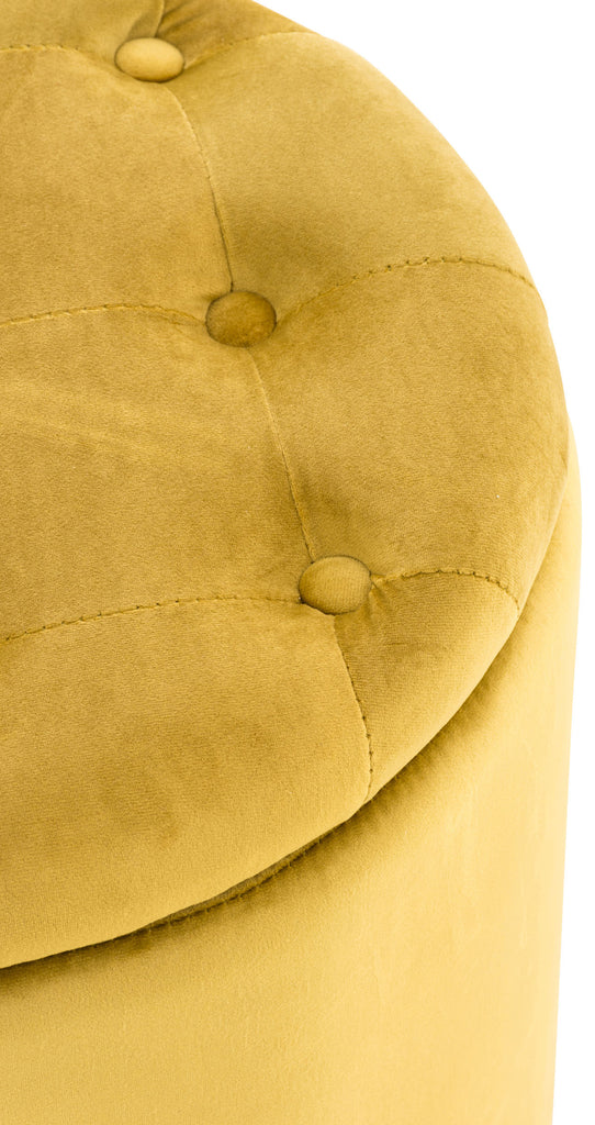 Pouf tabouret coffre avec espace de rangement en tissu velours jaune 42x44cm TABO10078