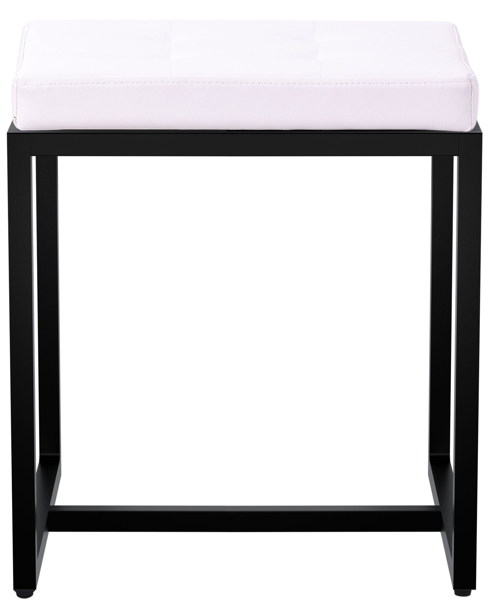 Banc d’entrée tabouret contemporain largeur 40cm à structure en métal noir assise capitonnée en similicuir blanc 10_0005923