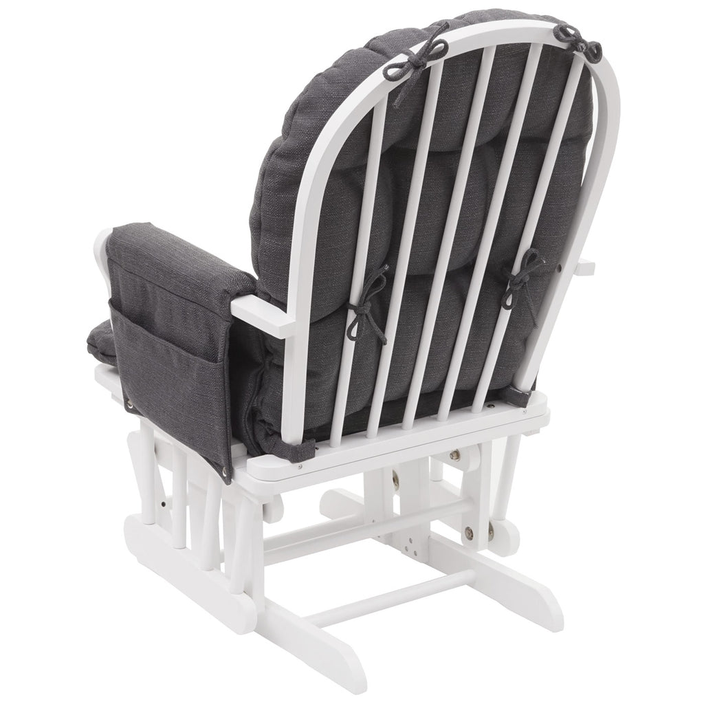 Fauteuil chaise à bascule rocking chair avec repose-pieds relaxation design rustique en bois de bouleau blanc et tissu gris foncé 04_0002929