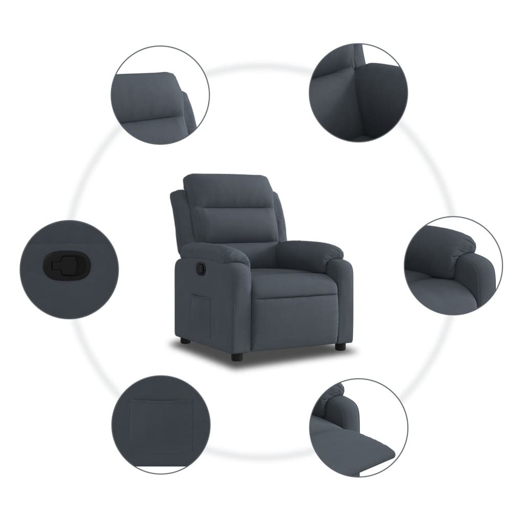 Fauteuil relax TV rembourrage confortable fonction d'inclinaison manuelle en velours gris foncé DEC027964