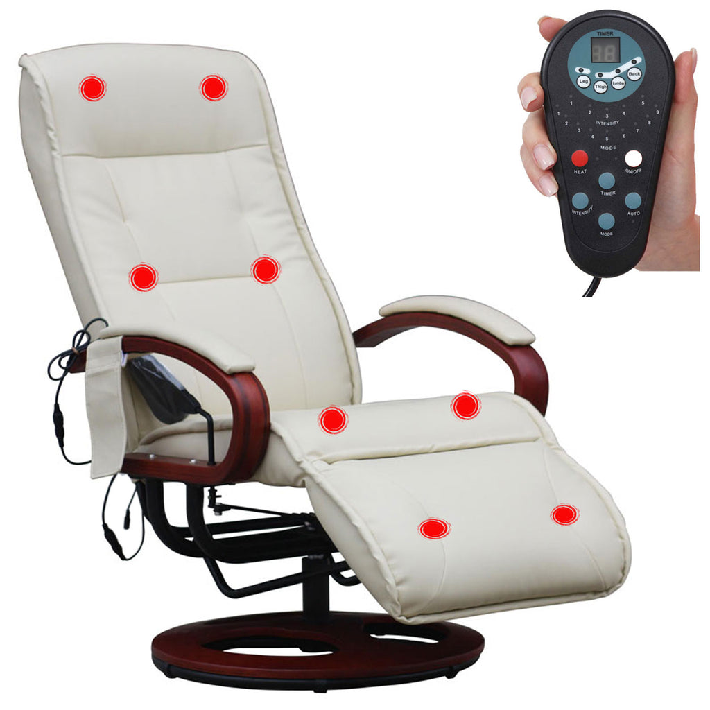 Fauteuil de relaxation avec fonction massage en 8 points 3 niveaux d'intensité en cuir crème 04_0006380