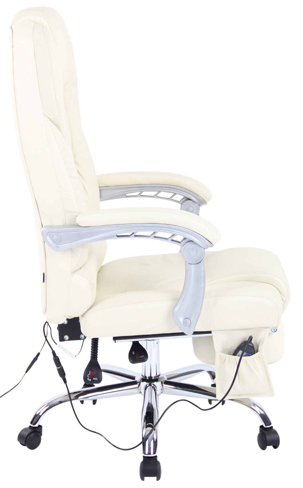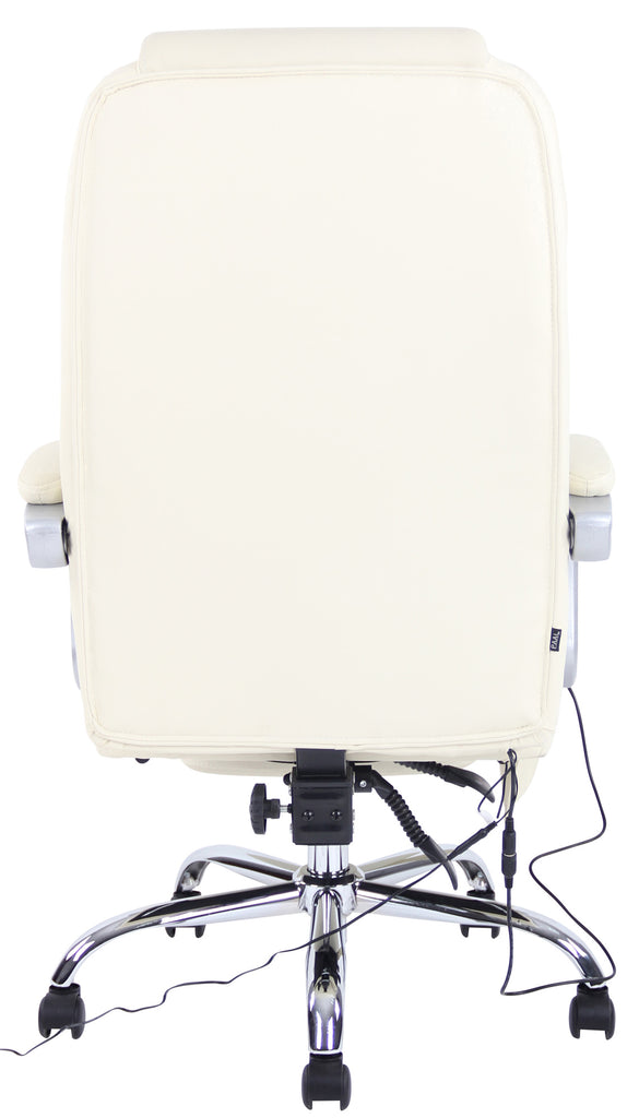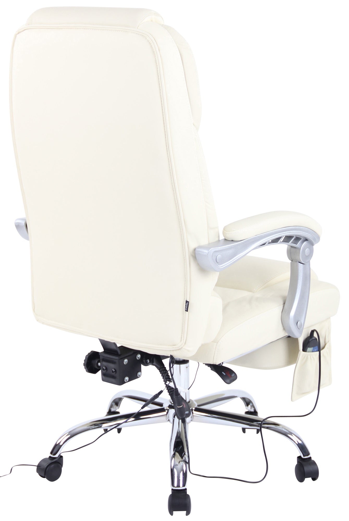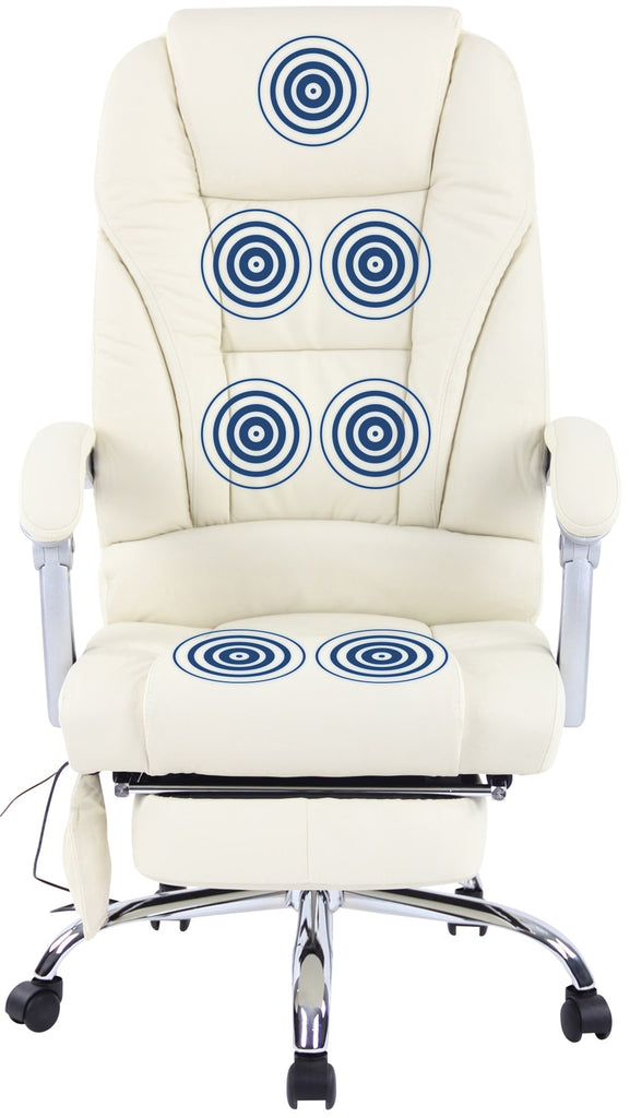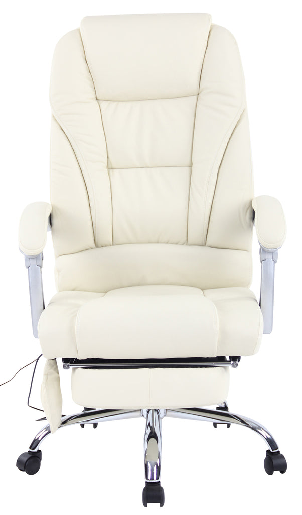 Fauteuil de bureau avec fonction massage et repose-pieds ajustables en véritable cuir crème 10_0002573