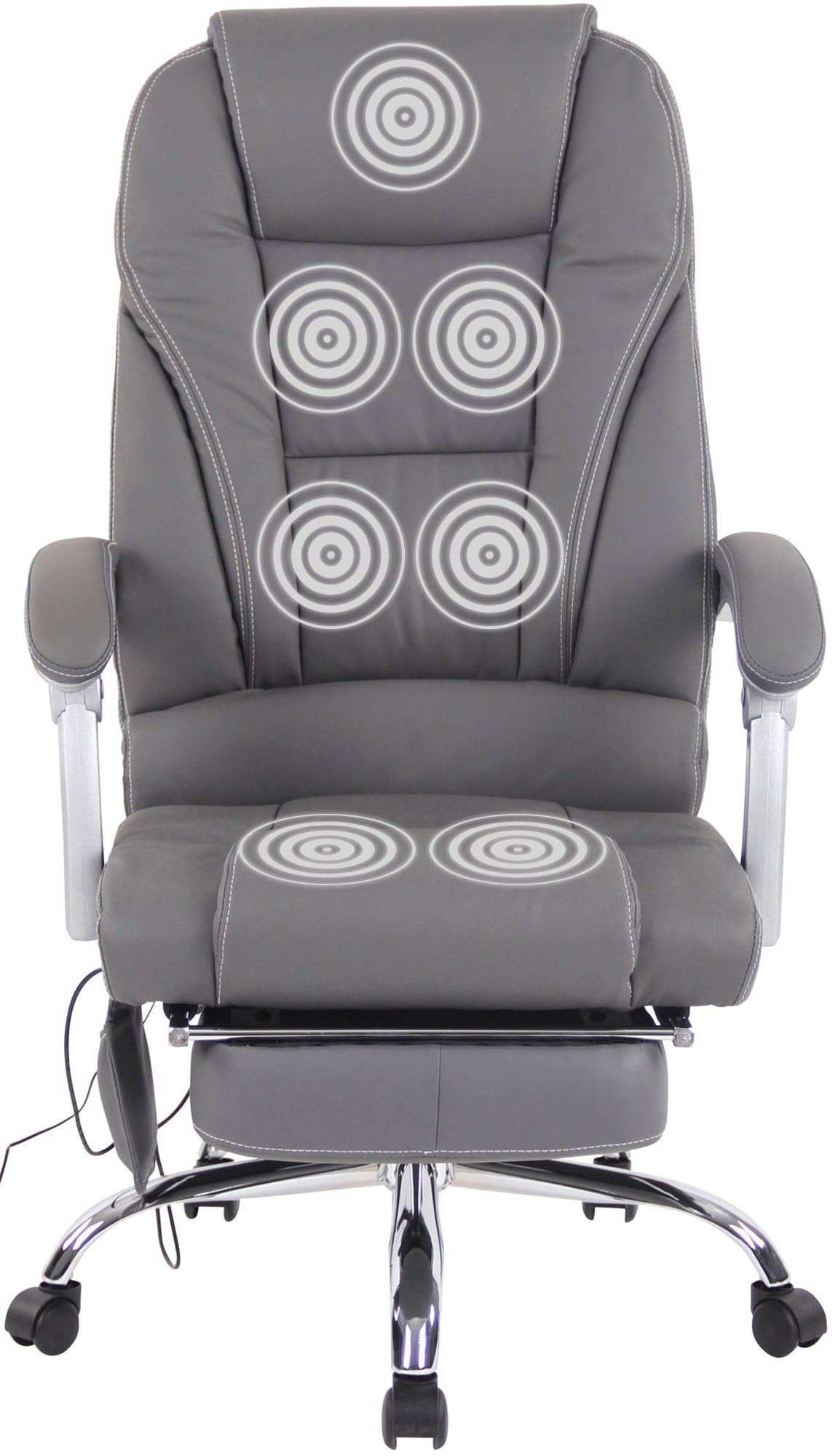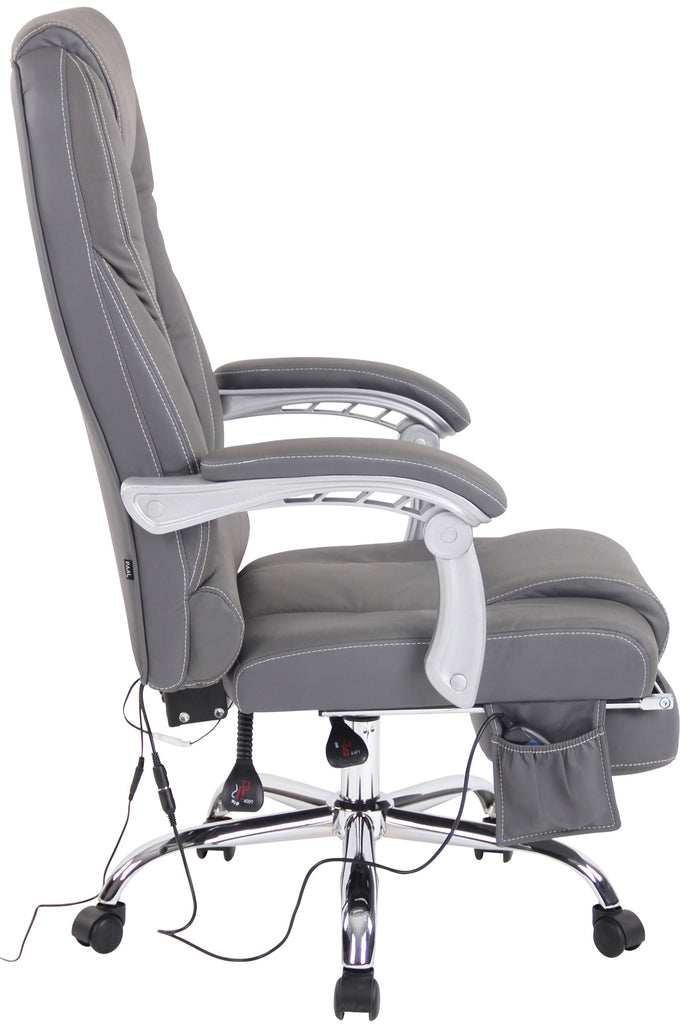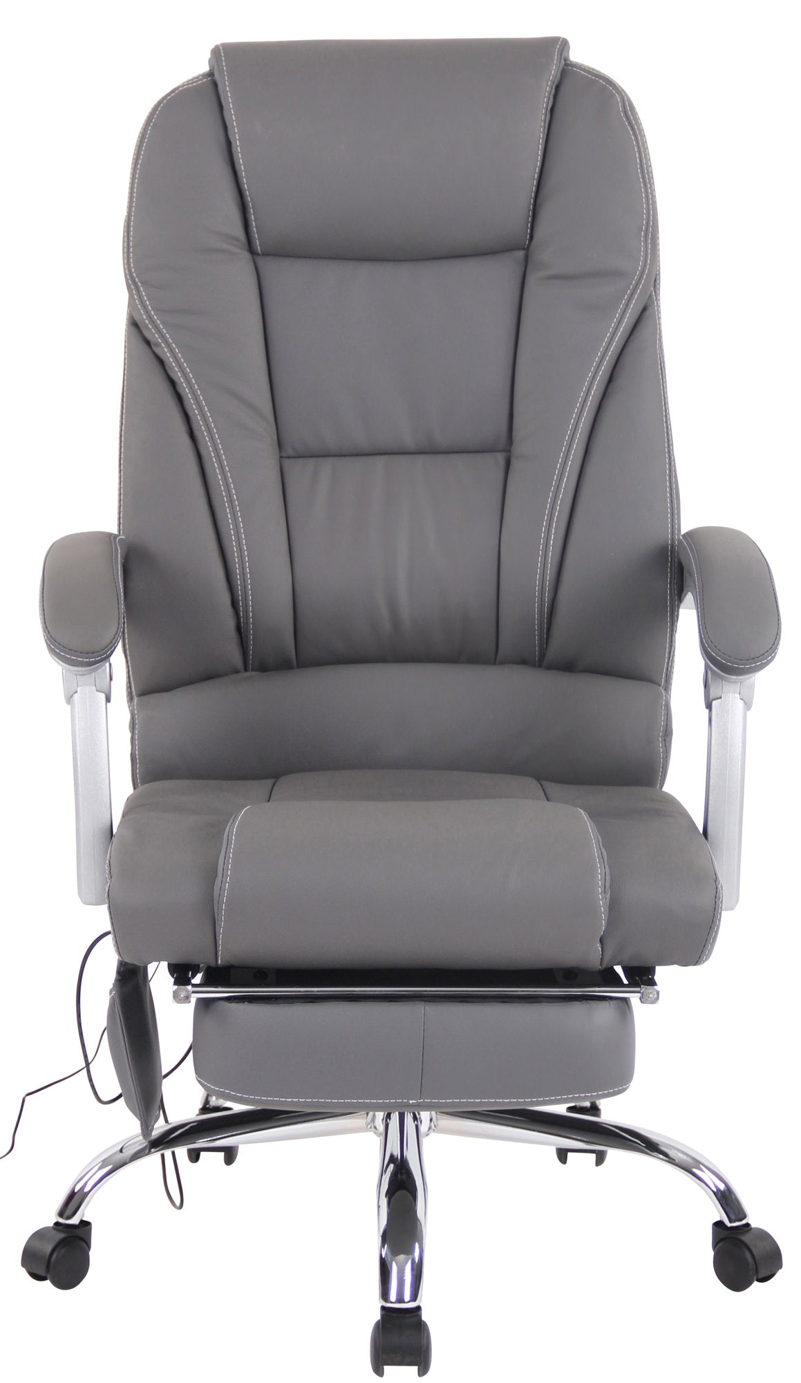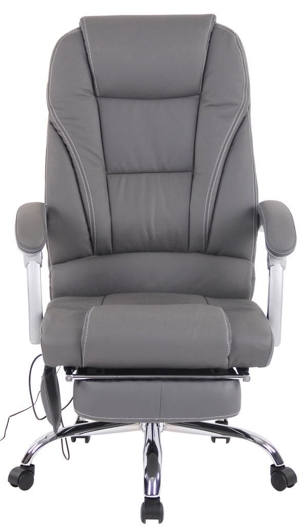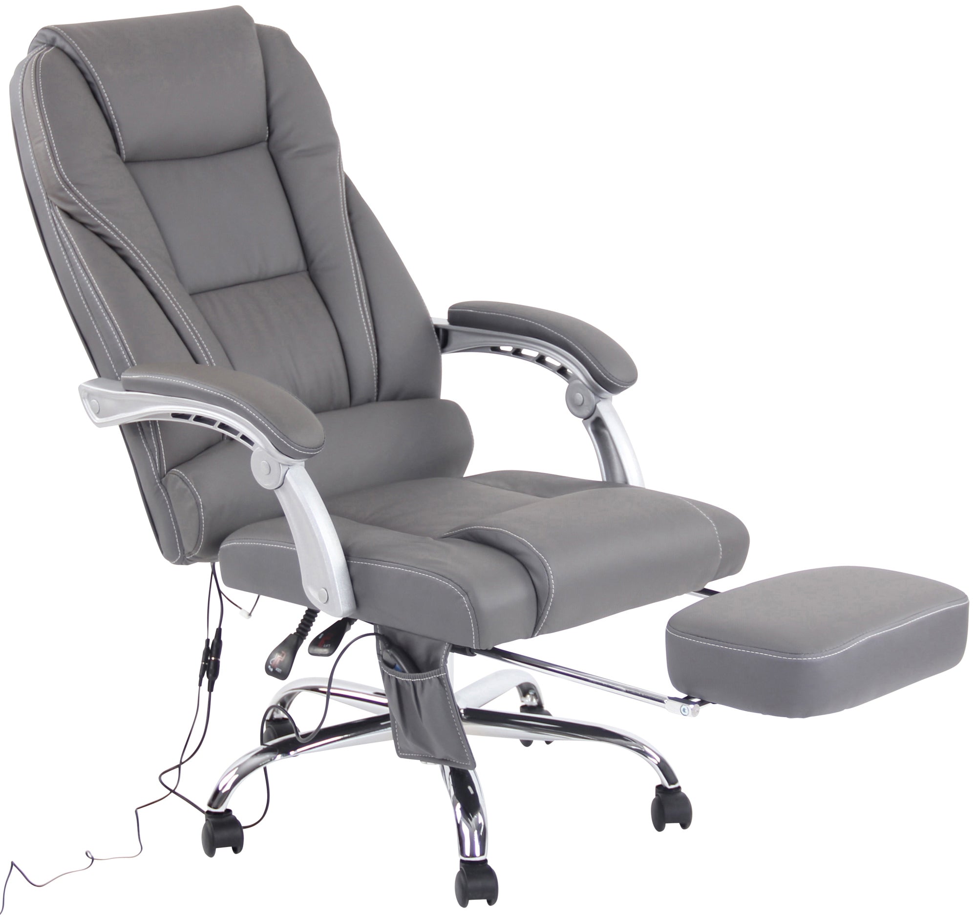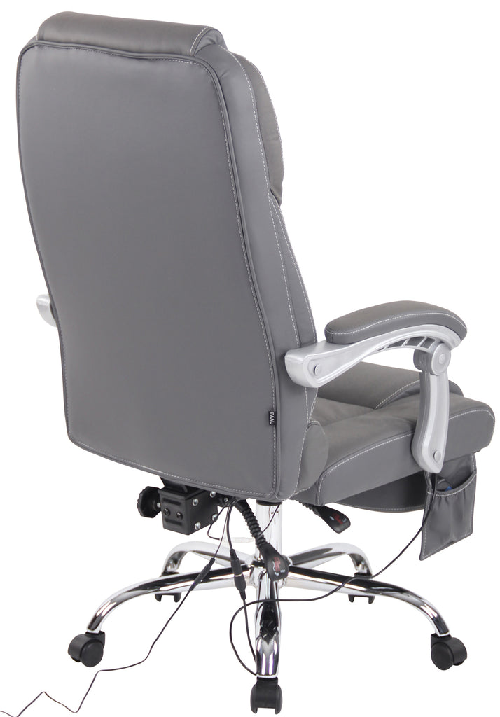 Fauteuil de bureau avec fonction massage et repose-pieds ajustables en véritable cuir gris 10_0002574