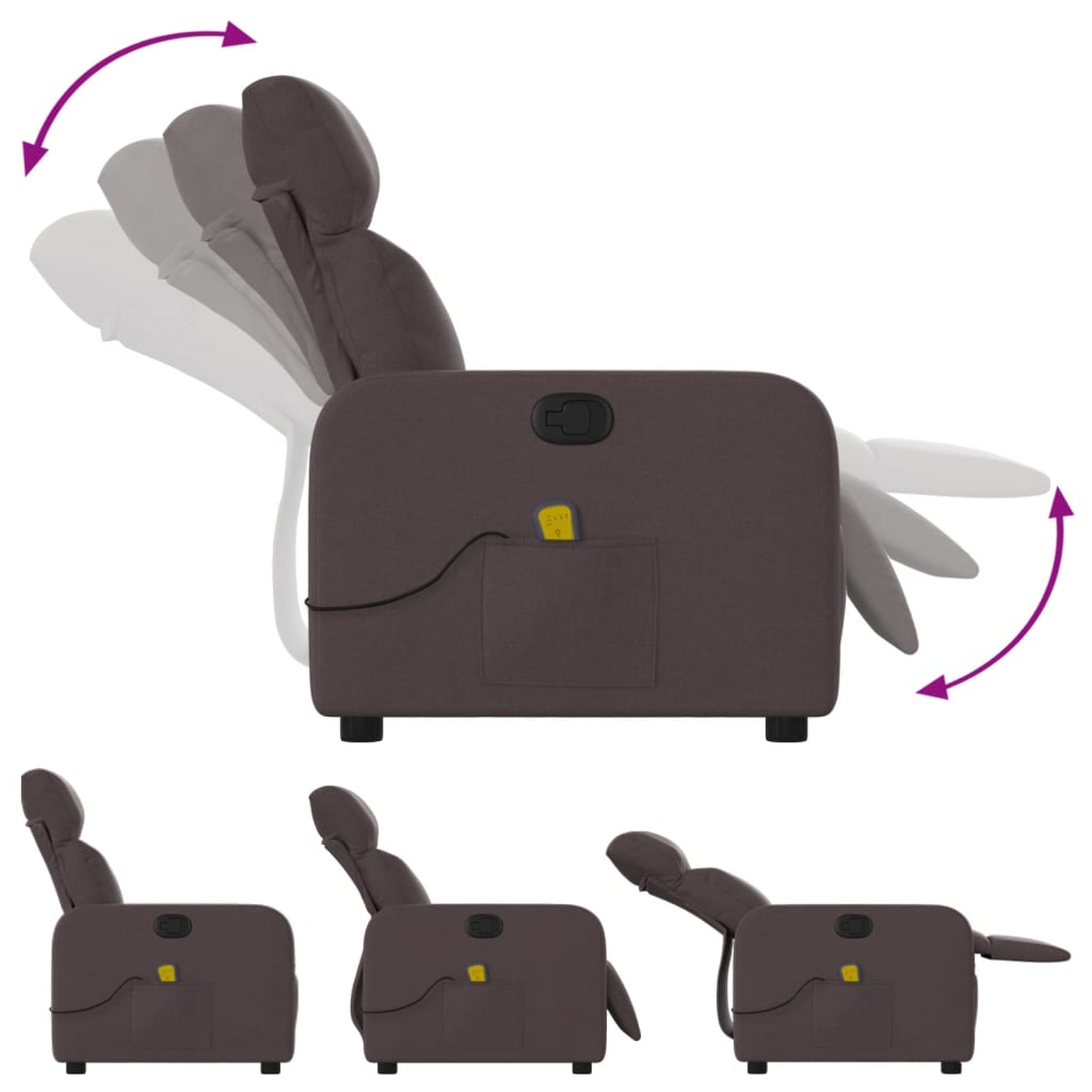 Fauteuil de relaxation TV fonction massage inclinable marron foncé tissu brun DEC026989