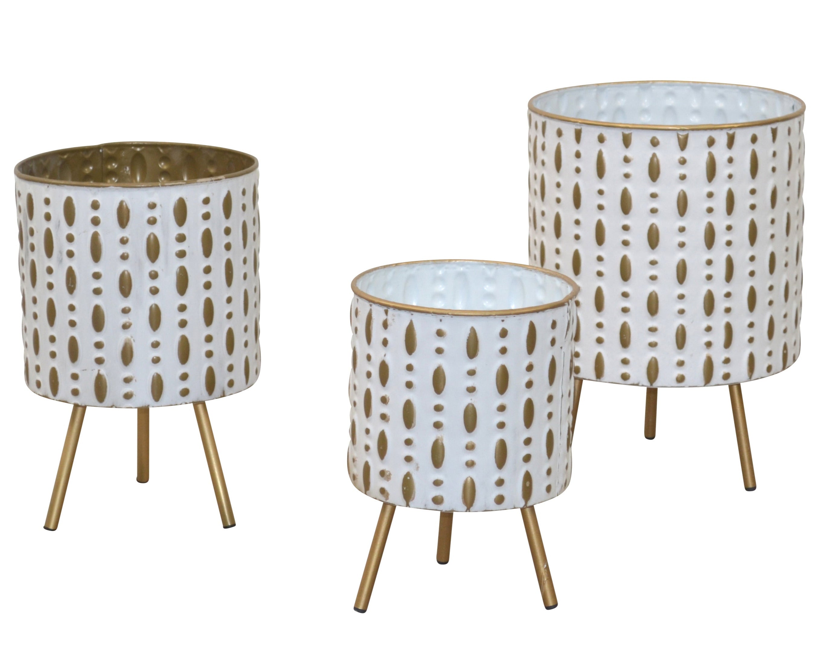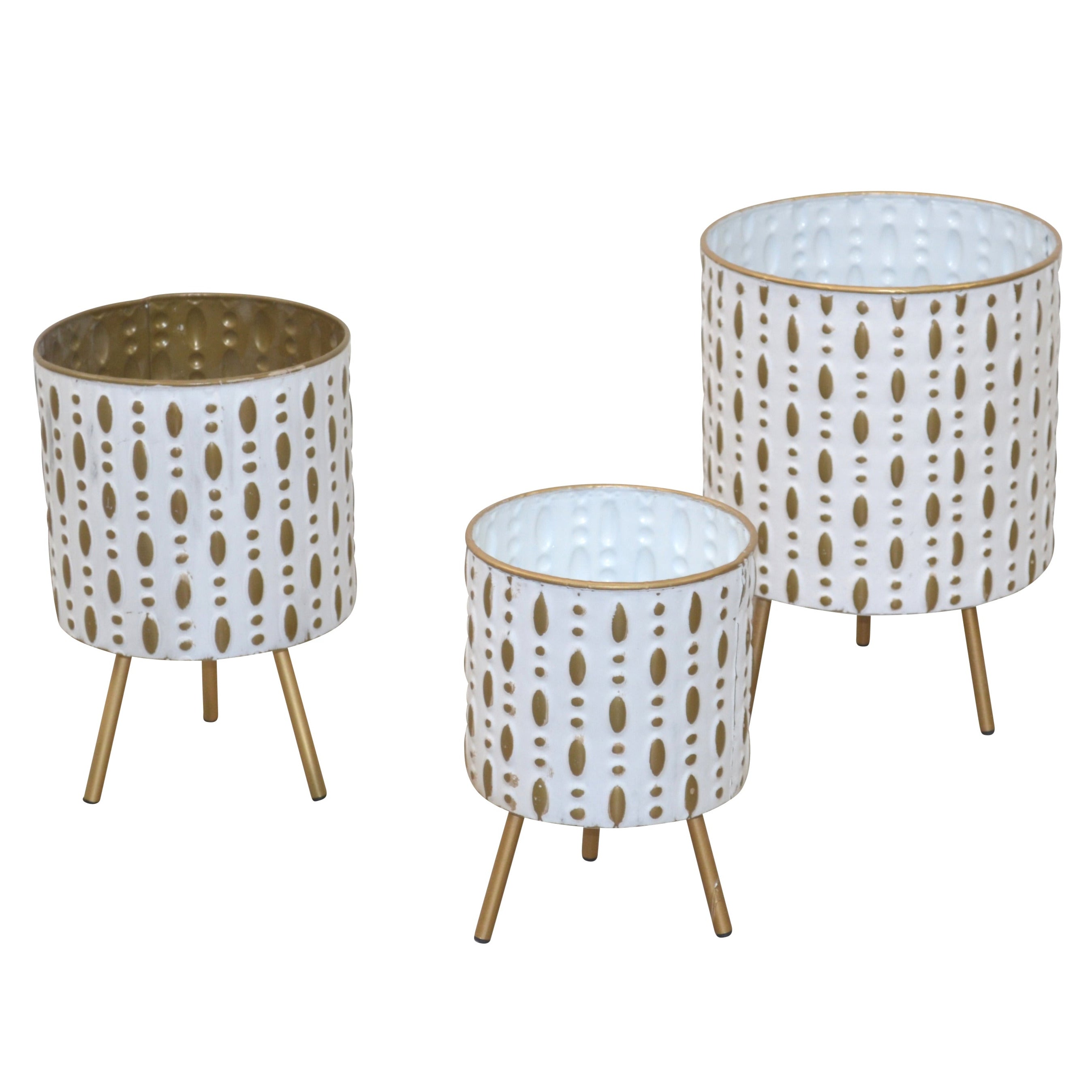 Ensemble de pots de fleurs 3 pièces jardinière en métal avec une surface blanc crème