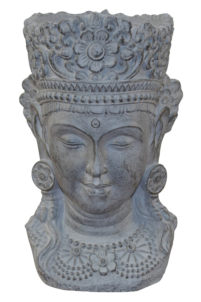 Pot de fleurs décoratif tête de Bouddha – Polyresin gris 43 cm DEC050055