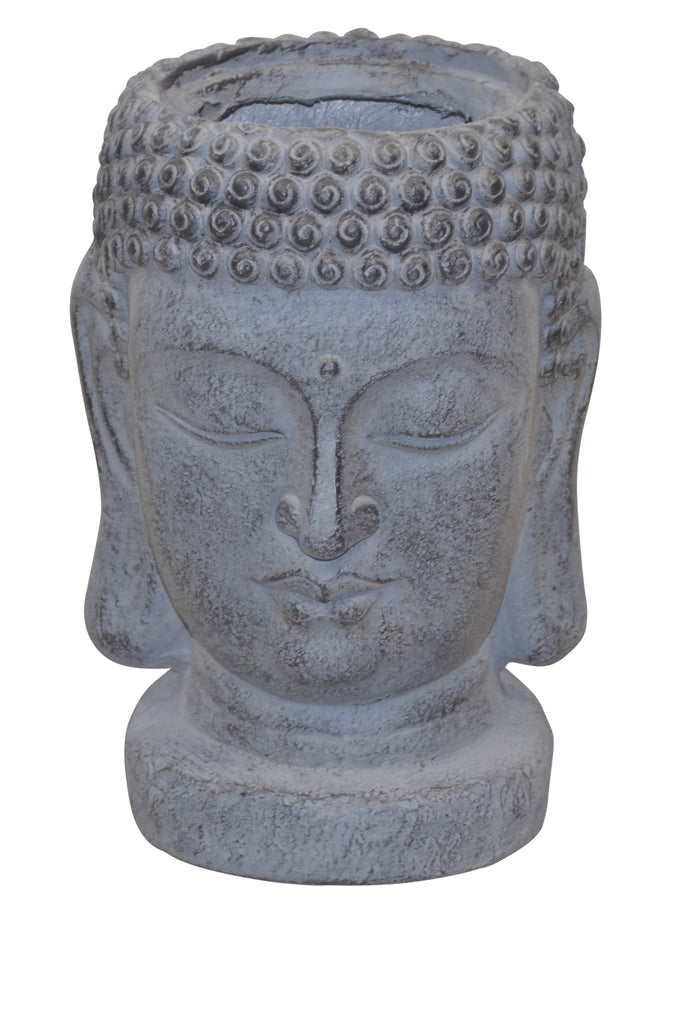Pot de fleurs décoratif tête de Bouddha – Polyresin gris 34 cm DEC050057
