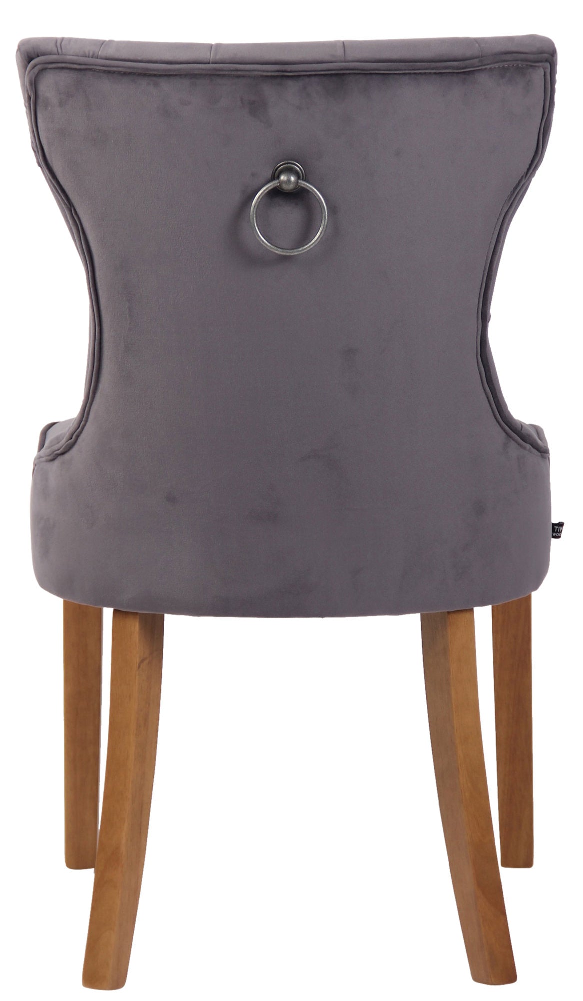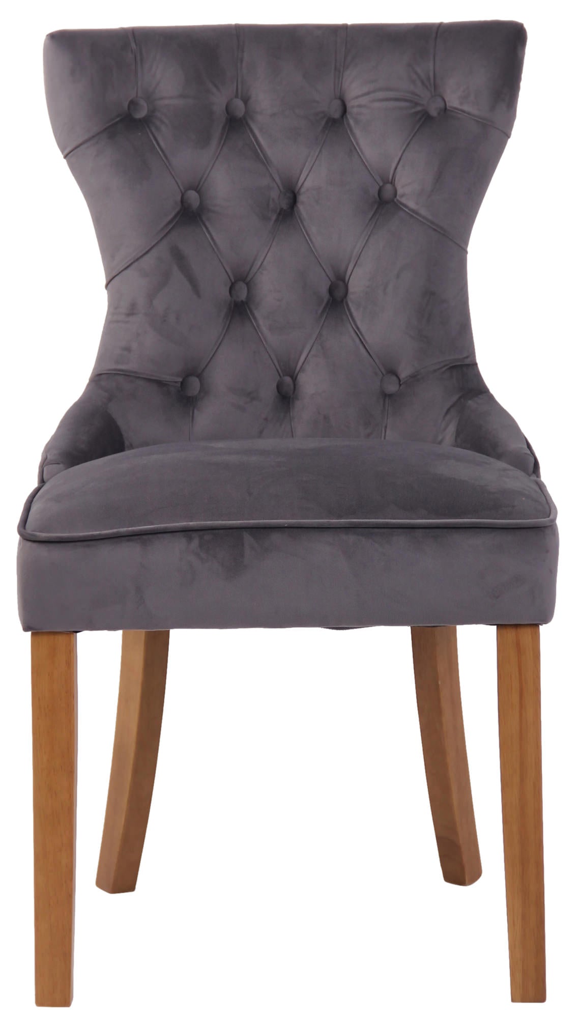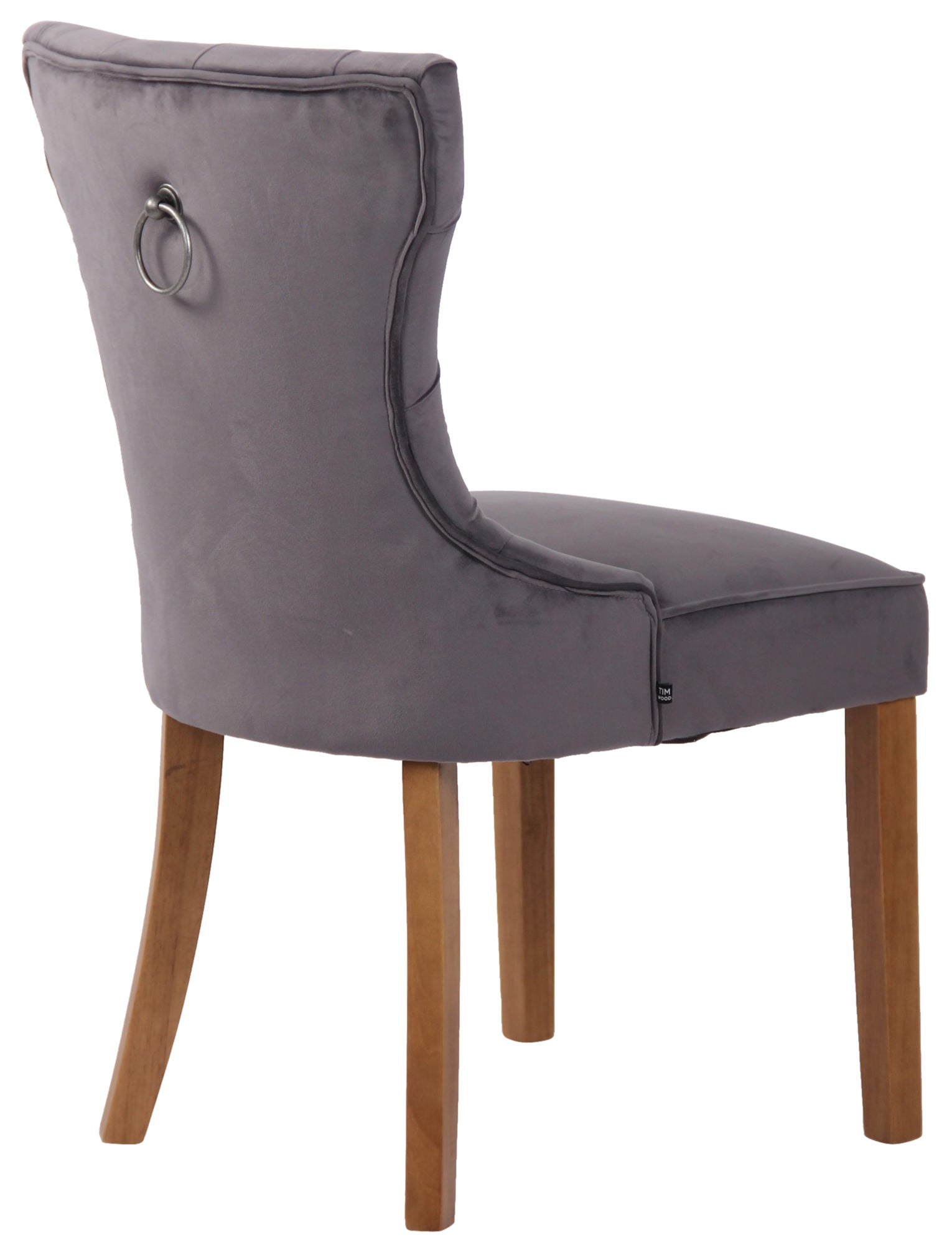 Chaise de salle à manger x 1 style Chesterfield dossier capitonné en velours gris et pieds en bois clair 10_0003736