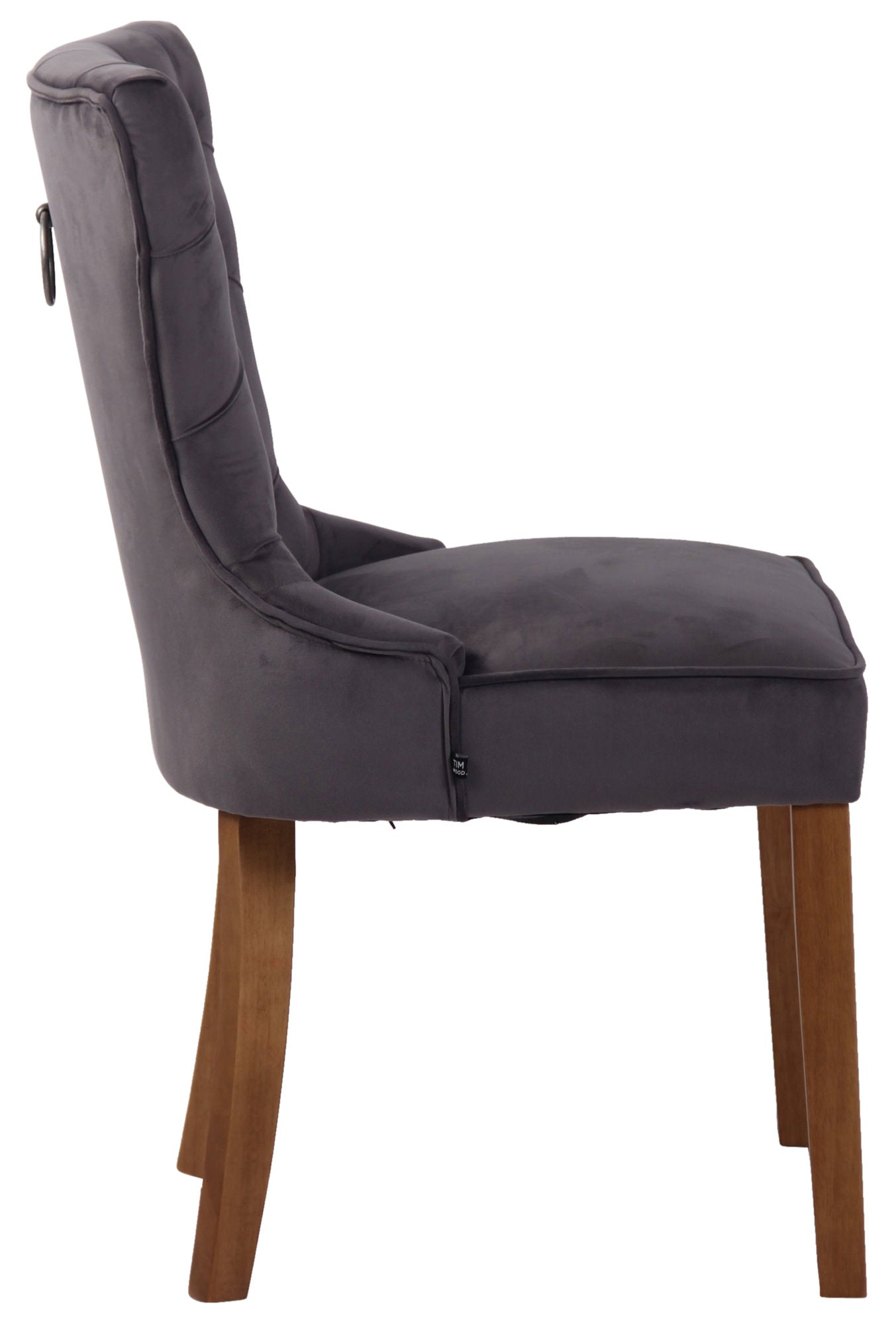 La chaise de salle à manger era votre alliée si vous êtes à la recherche d'une chaise de salle à manger dans un design élégant, classique et épuré. La chaise est idéale pour les adeptes des styles anciens et élégants. Son assise est généreusement rembourrée et revêtue d'un velours de haute qualité aussi résistant que facile à entretenir. Son dossier haut est joliment molletonné et orné de boutons décoratifs dans le style Chesterfield. Le dossier est conçu dans une forme originale, plus étroit au milieu qu'aux extrémités. Une forme qui confère une touche supplémentaire d'élégance à ce modèle qui repose sur un support en bois de caoutchouc. Un matériel particulièrement robuste qui offre une stabilité indéniable à cette chaise. Décoration en métal sur le dossier.