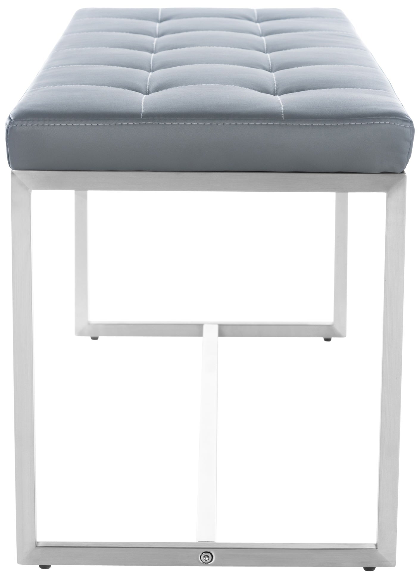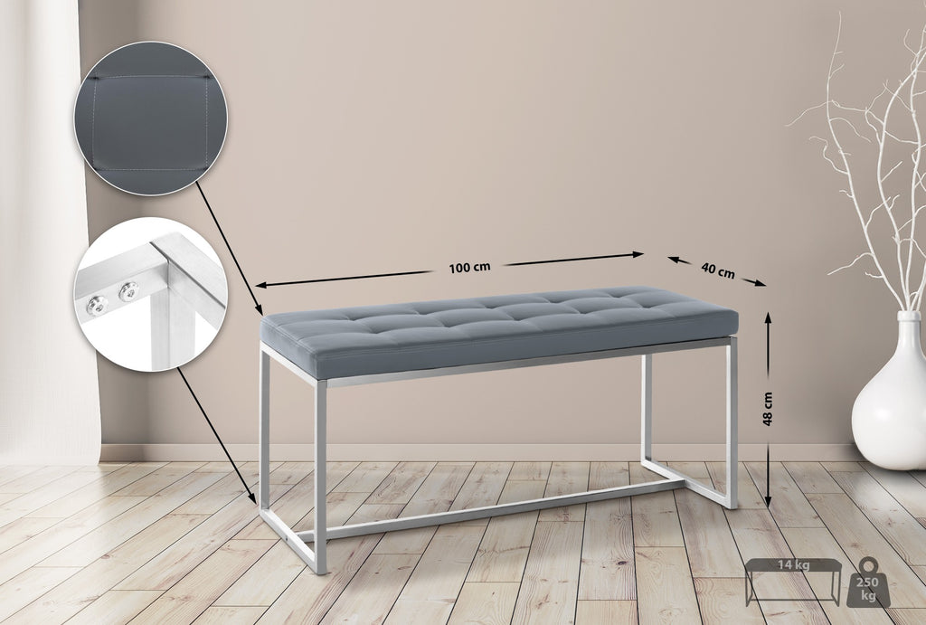 Banc banquette en PVC gris capitonné assise rembourrée et acier inoxydable 100 cm 10_0005504