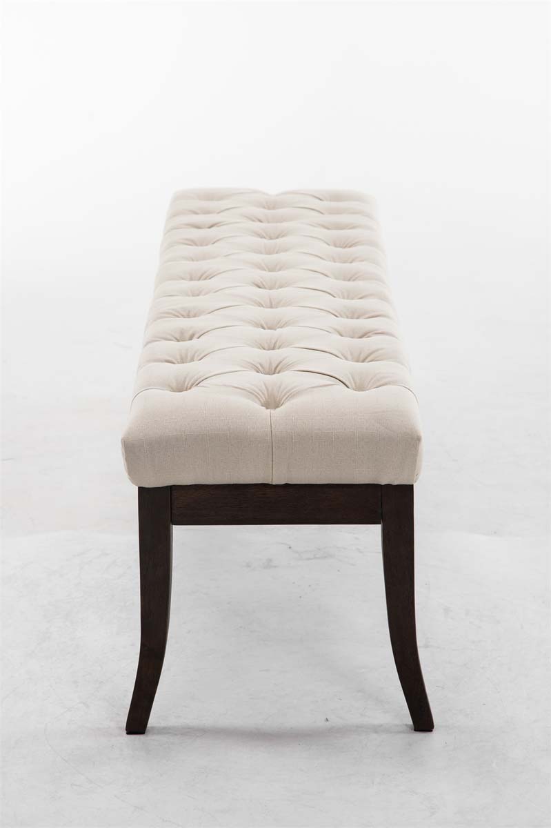 Banc design Chesterfield 150 cm avec coutures décoratives tissu crème piétement en bois foncé 10_0003687