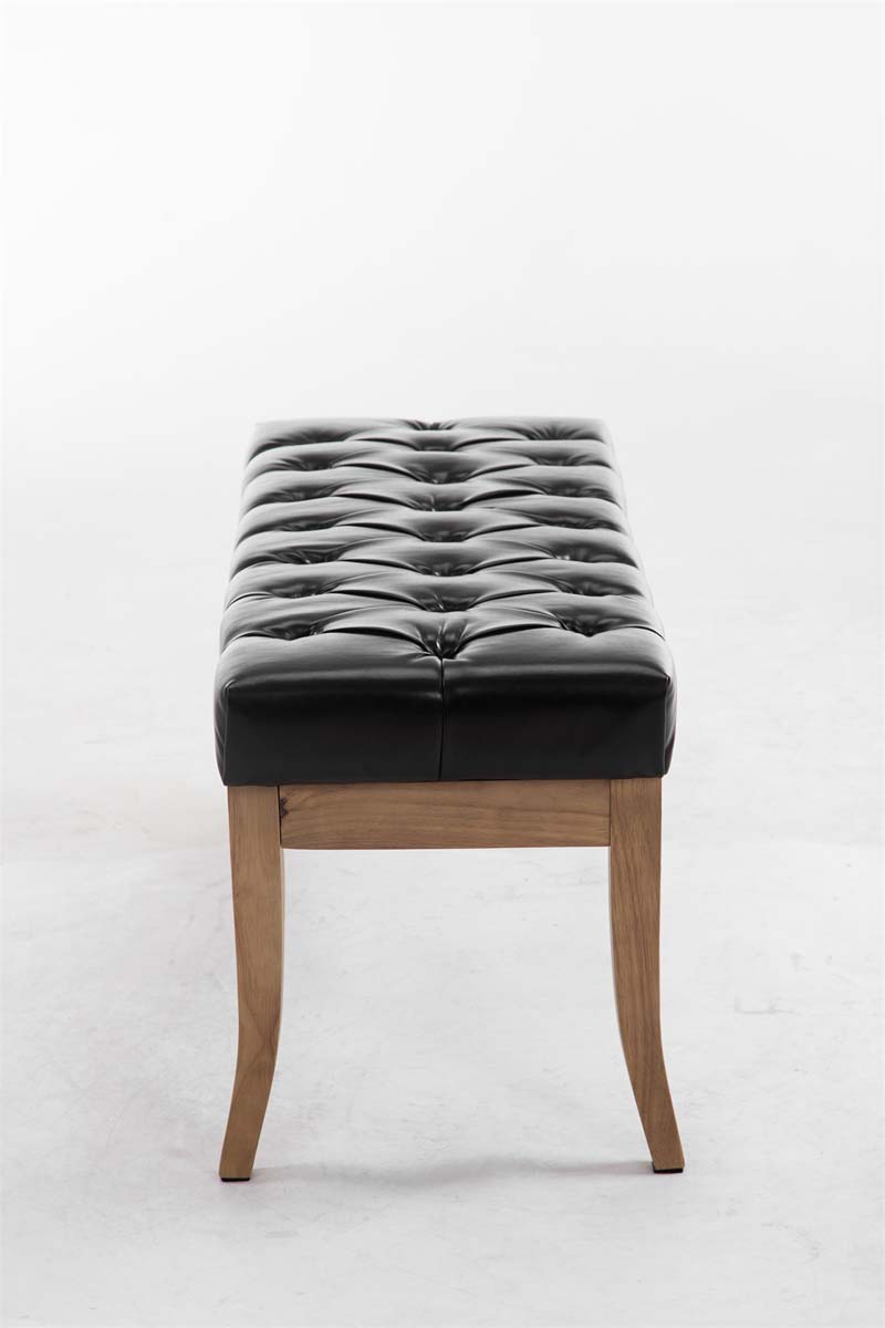 Banc design Chesterfield 100 cm avec coutures décoratives PVC noir piétement en bois clair 10_0003677
