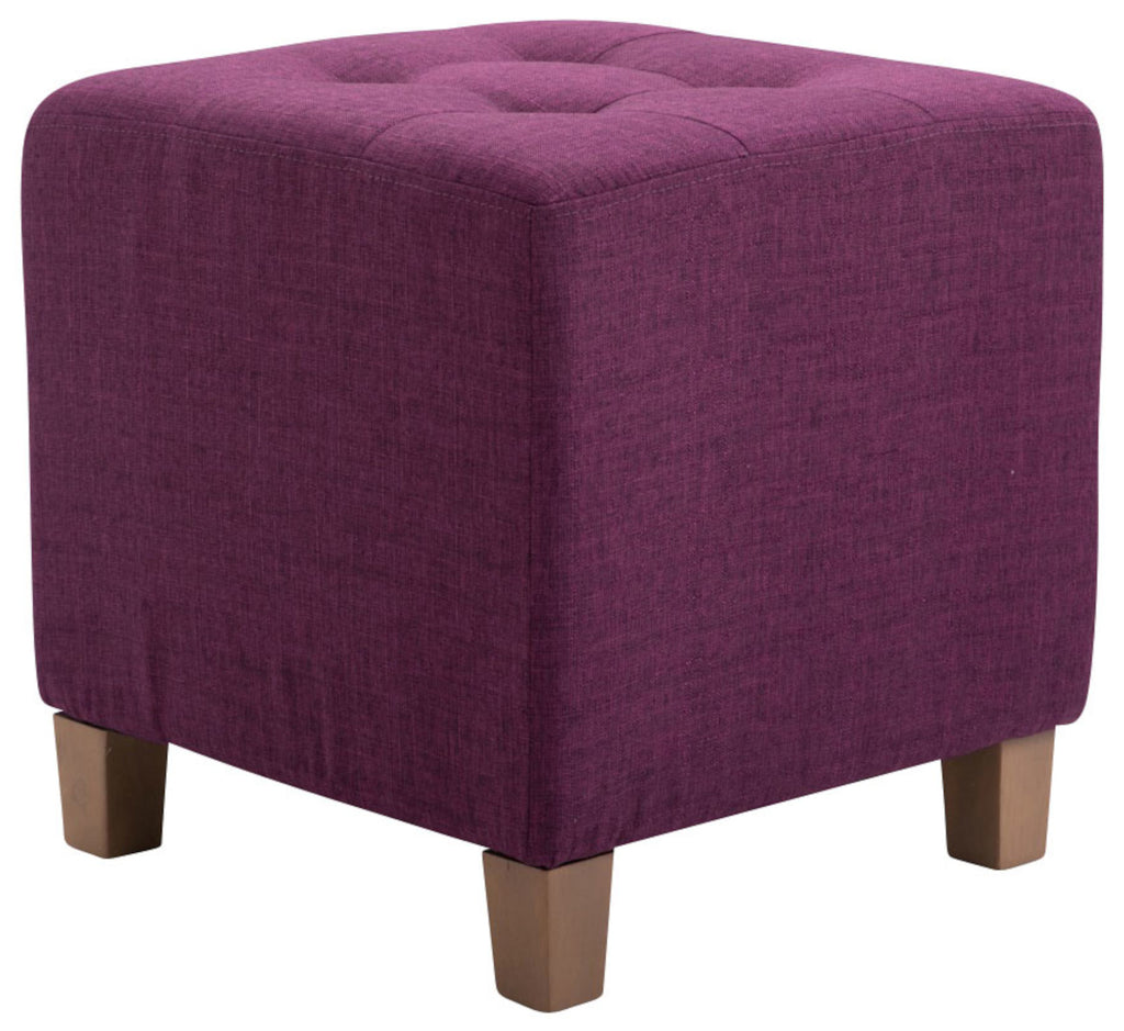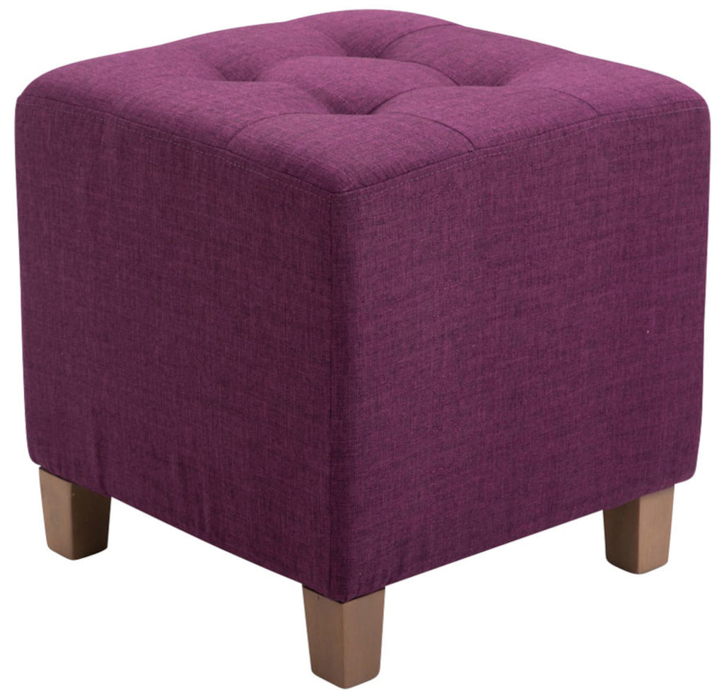 Lot de 2 poufs carrés en tissu violet avec pieds en bois 45x45 cm – Assise capitonnée élégante 10_0006694