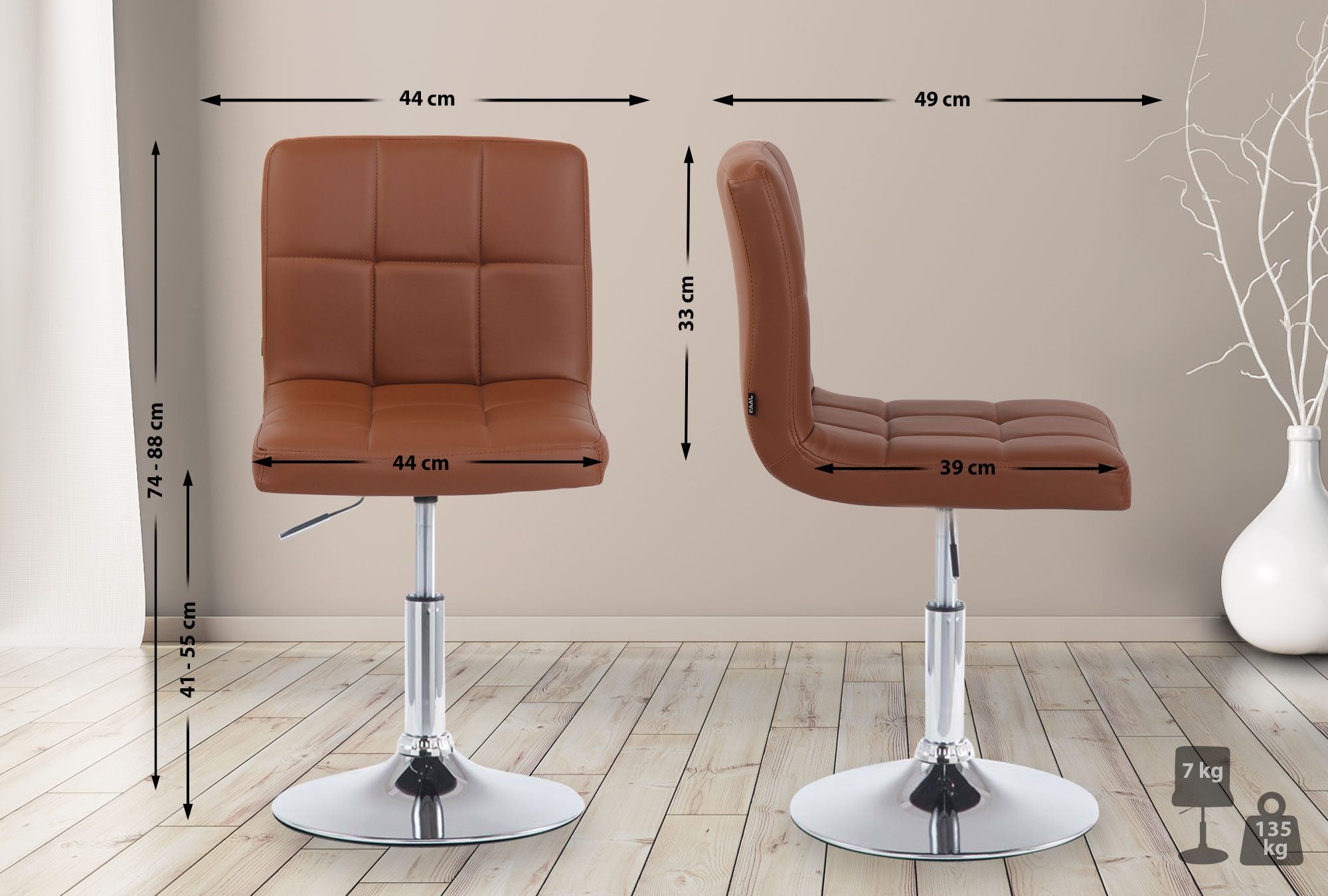 Chaise de salle à manger x1 hauteur réglable design moderne couture décorative en PVC marron clair piètement en métal 10_0005498