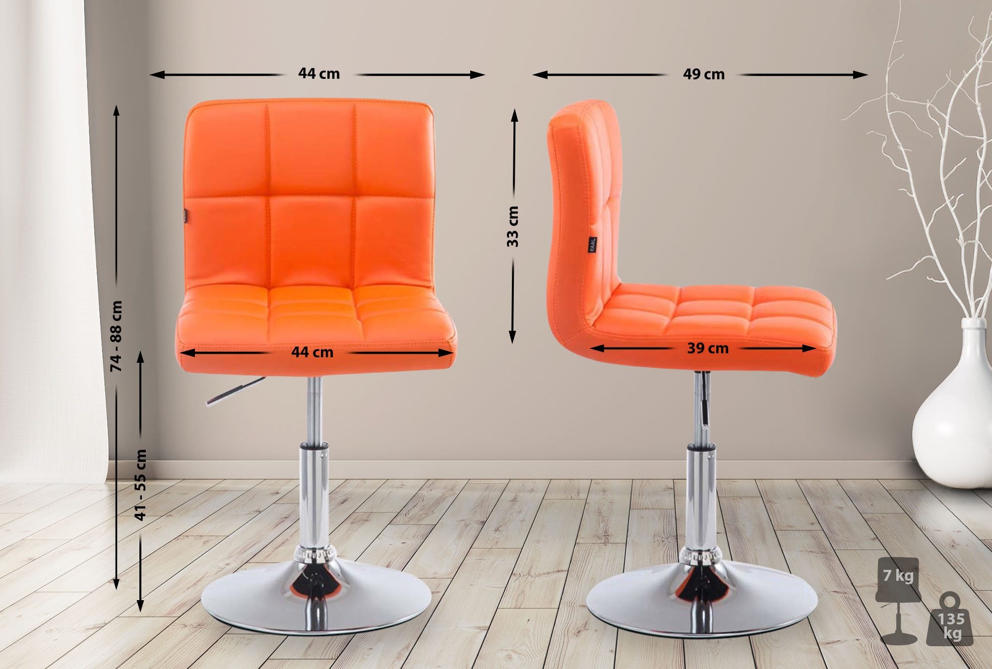 Chaise de salle à manger x1 hauteur réglable design moderne couture décorative en PVC orange piètement en métal 10_0005501