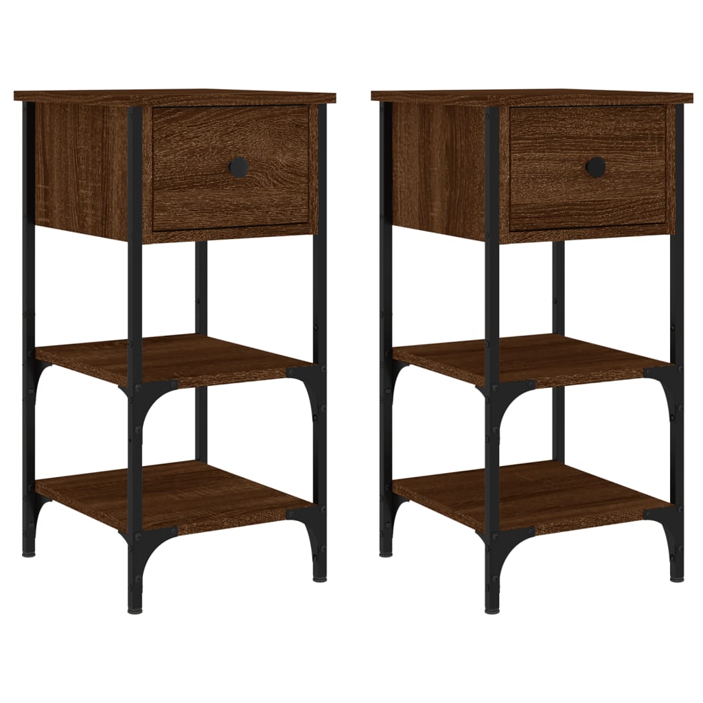 Lot de 2 tables de chevet avec tiroir et étagères 34 x 36 x 70 cm bois ingénierie marron et fer DEC035157
