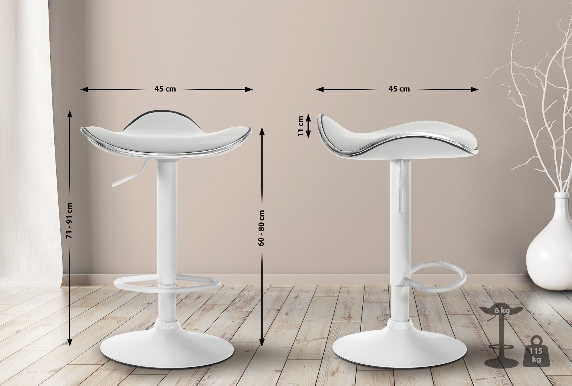 Le tabouret de bar se distingue par ses lignes élégantes et courbées. Il est l'un de nos tabourets de bar les plus prisés. Grâce au vérin à gaz, ce siège s'adapte aux comptoirs de toutes hauteurs. Le repose-pieds permet vous permettra une assise confortable, même durant de longues périodes d'utilisation. Le siège est, quant à lui, pivotant à 360°. L'assise ergonomique s'adapte au corps et permet de garder une position correcte. La surface en similicuir est facile en entretenir. Cette chaise haute de bar est idéale pour les expositions, restaurants et bars ou en usage privé dans une cuisine ou coin bar d'un salon. Le piètement de ce modèle est en métal chromé et son siège en similicuir très résistant. Le pied possède un patin de protection qui protège votre sol des rayures.