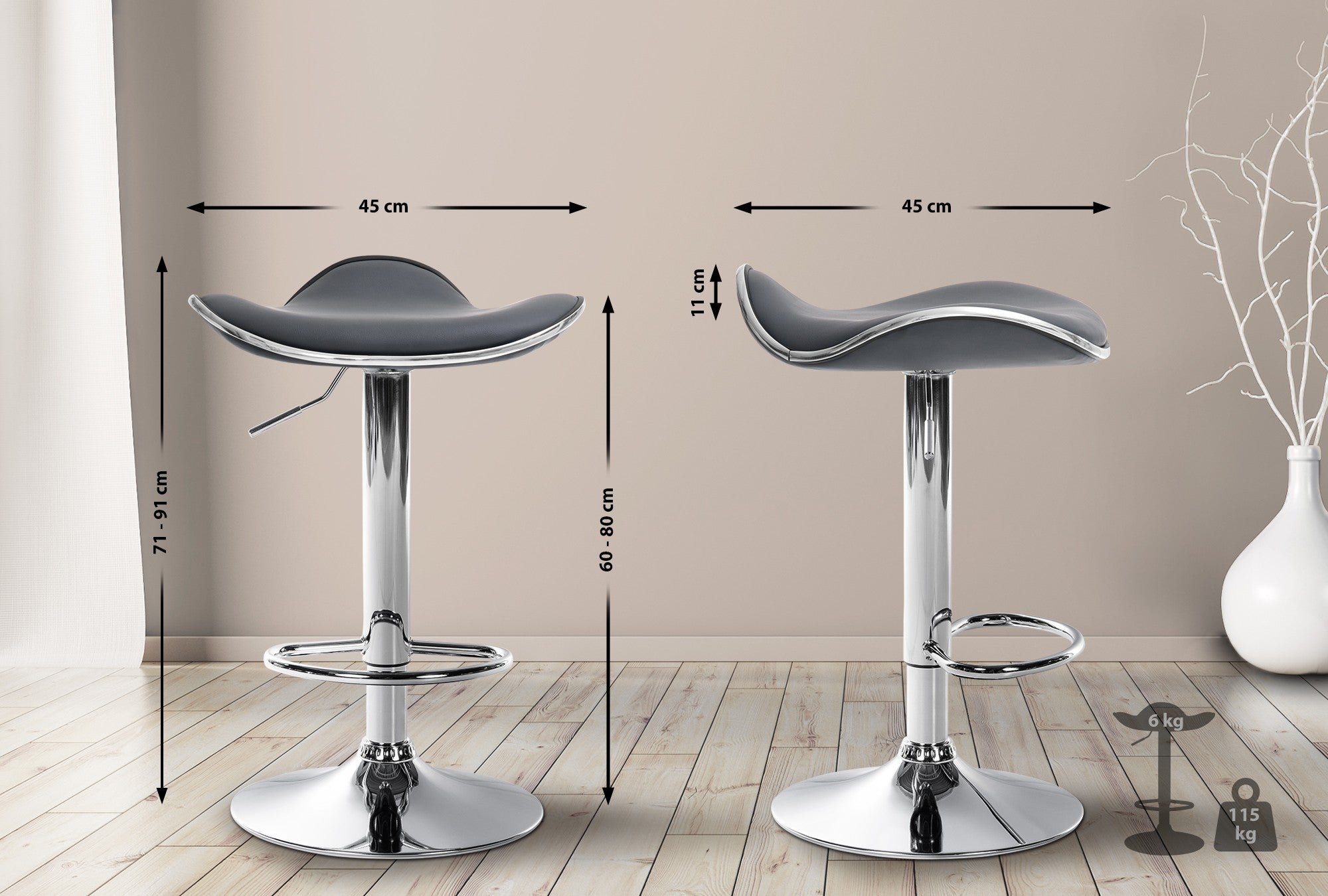 Le tabouret de bar se distingue par ses lignes élégantes et courbées. Il est l'un de nos tabourets de bar les plus prisés. Grâce au vérin à gaz, ce siège s'adapte aux comptoirs de toutes hauteurs. Le repose-pieds permet vous permettra une assise confortable, même durant de longues périodes d'utilisation. Le siège est, quant à lui, pivotant à 360°. L'assise ergonomique s'adapte au corps et permet de garder une position correcte. La surface en similicuir est facile en entretenir. Cette chaise haute de bar est idéale pour les expositions, restaurants et bars ou en usage privé dans une cuisine ou coin bar d'un salon. Le piètement de ce modèle est en métal chromé et son siège en similicuir très résistant. Le pied possède un patin de protection qui protège votre sol des rayures.