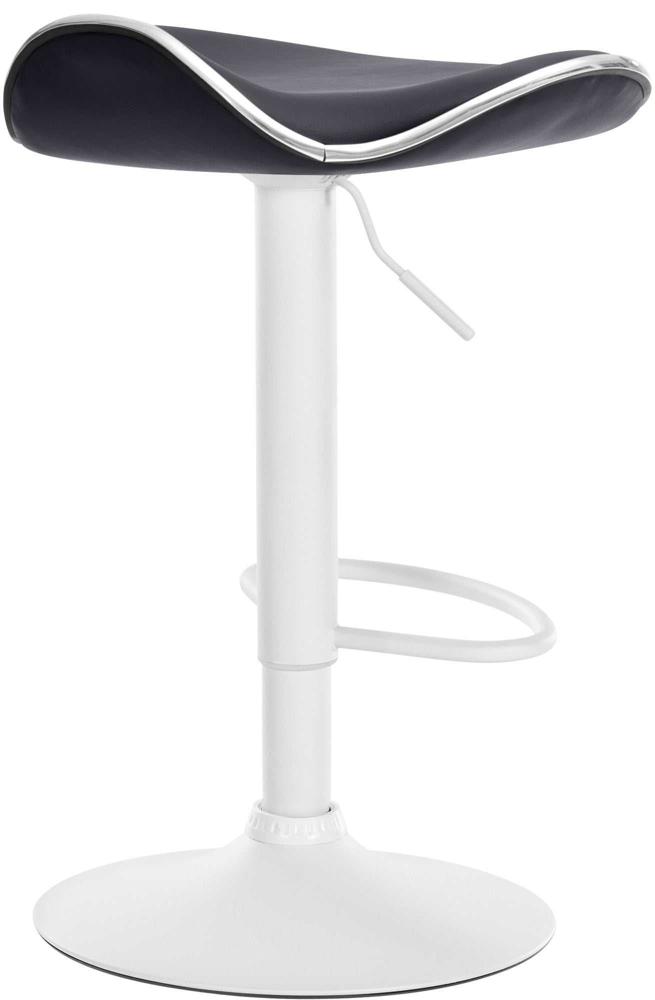 Le tabouret de bar se distingue par ses lignes élégantes et courbées. Il est l'un de nos tabourets de bar les plus prisés. Grâce au vérin à gaz, ce siège s'adapte aux comptoirs de toutes hauteurs. Le repose-pieds permet vous permettra une assise confortable, même durant de longues périodes d'utilisation. Le siège est, quant à lui, pivotant à 360°. L'assise ergonomique s'adapte au corps et permet de garder une position correcte. La surface en similicuir est facile en entretenir. Cette chaise haute de bar est idéale pour les expositions, restaurants et bars ou en usage privé dans une cuisine ou coin bar d'un salon. Le piètement de ce modèle est en métal chromé et son siège en similicuir très résistant. Le pied possède un patin de protection qui protège votre sol des rayures.