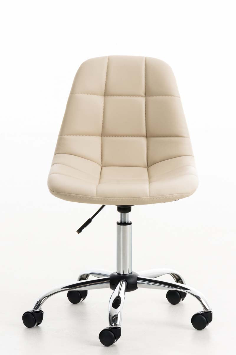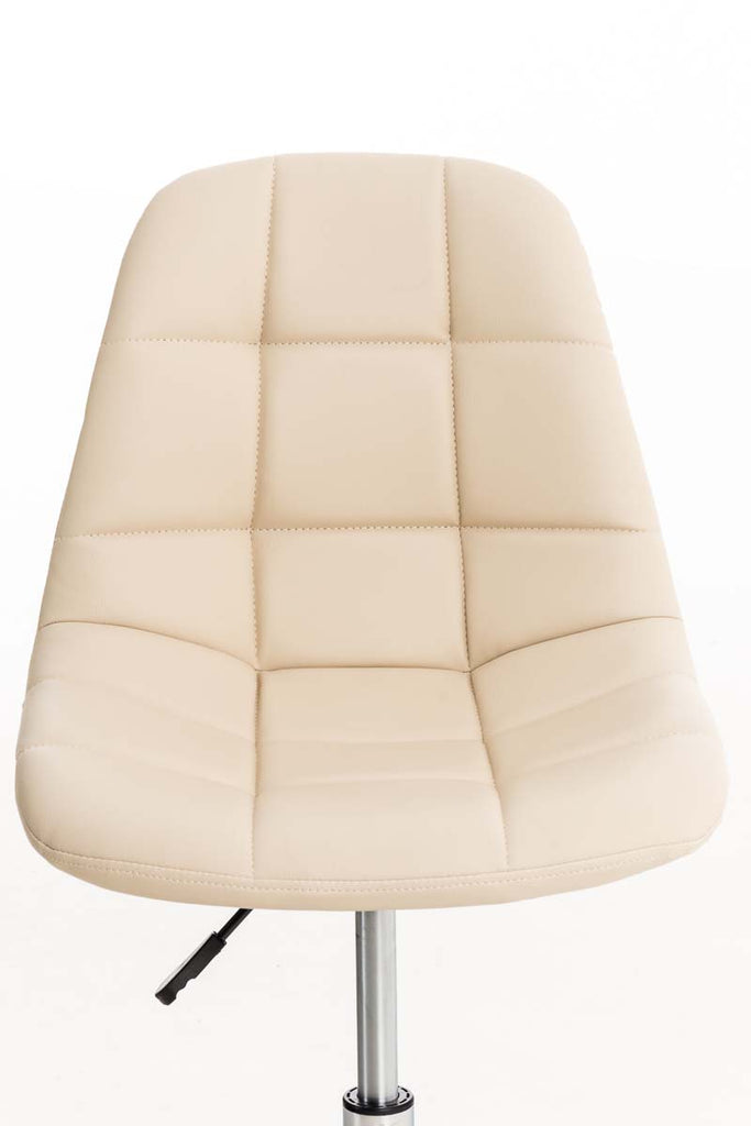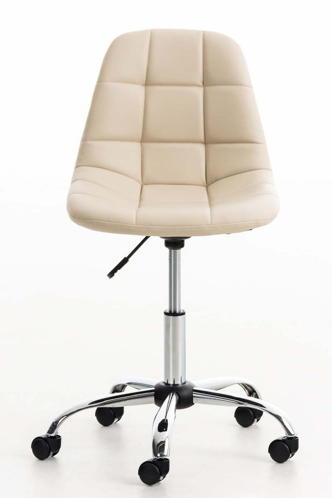 Chaise de bureau tabouret sur roulettes hauteur réglable en PVC crème et métal chromé 10_0002489