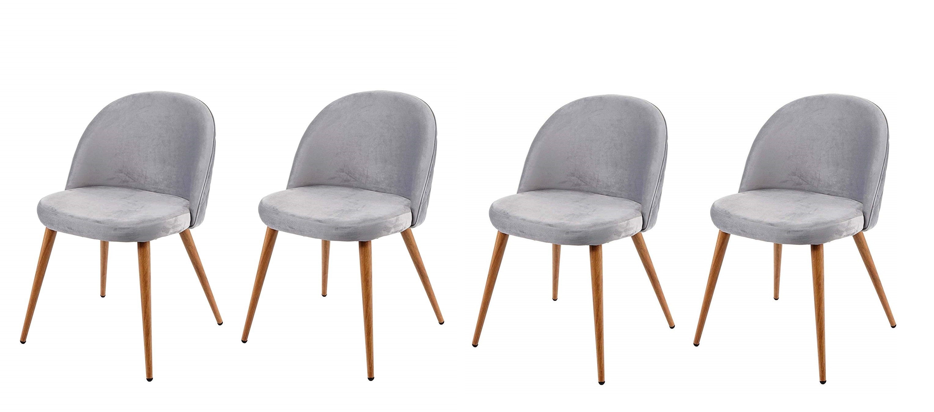 Lot de 4 chaises de salle à manger en tissu velours gris clair design rétro