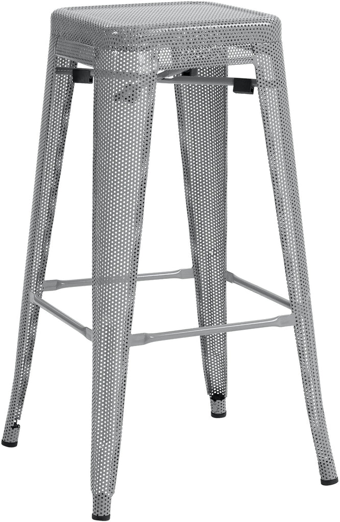 Tabouret de bar avec repose-pieds design industriel empilable en métal perforé argenté 10_0004871