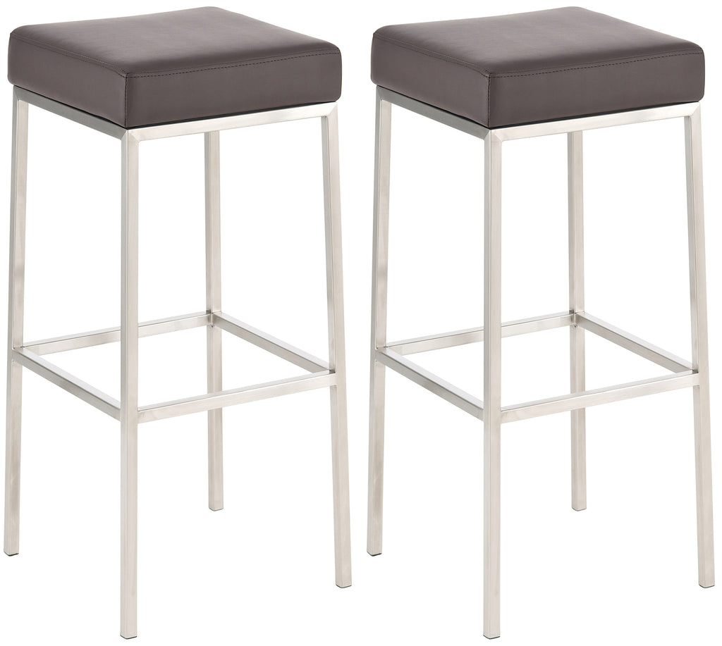 Lot de 2 tabourets de bar avec repose-pieds design simple hauteur 80 cm assise en PVC marron support en acier inoxydable 10_0004359