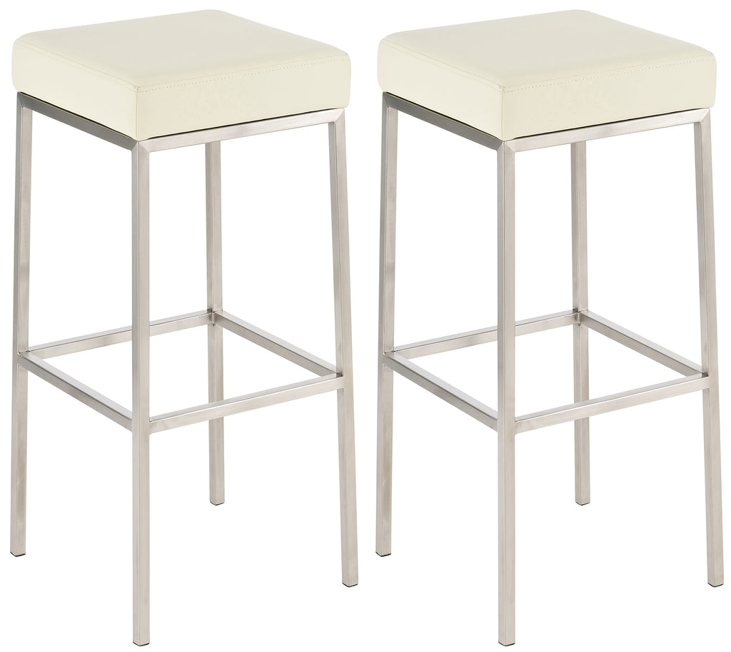 Lot de 2 tabourets de bar avec repose-pieds design hauteur 80 cm simple assise en PVC crème support en acier inoxydable 10_0004360