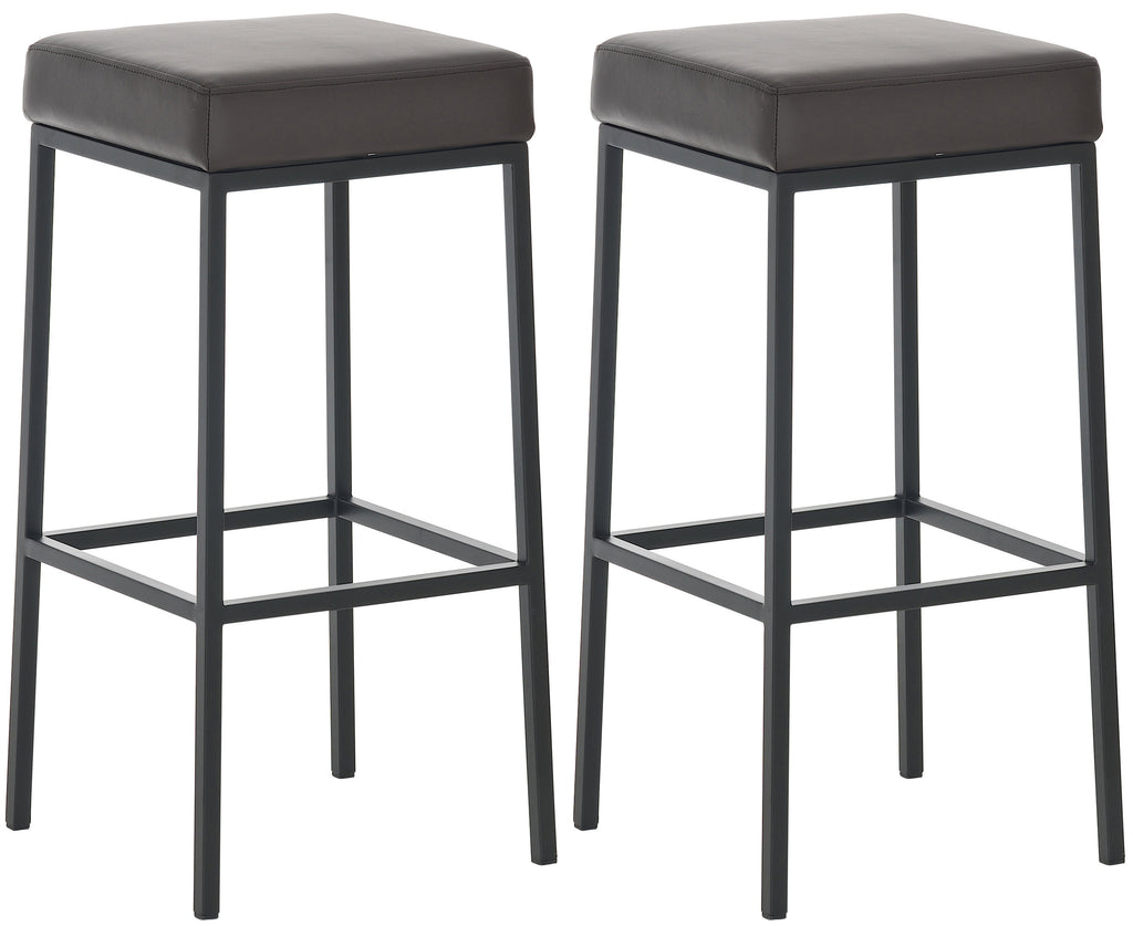 Lot de 2 tabourets de bar avec repose-pieds design simple hauteur 80 cm assise en PVC marron support en métal noir 10_0004365