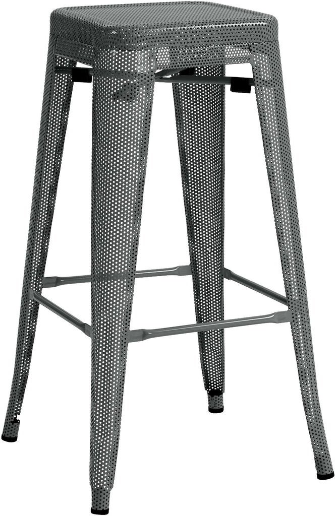 Tabouret de bar avec repose-pieds design industriel empilable en métal perforé gris 10_0004869