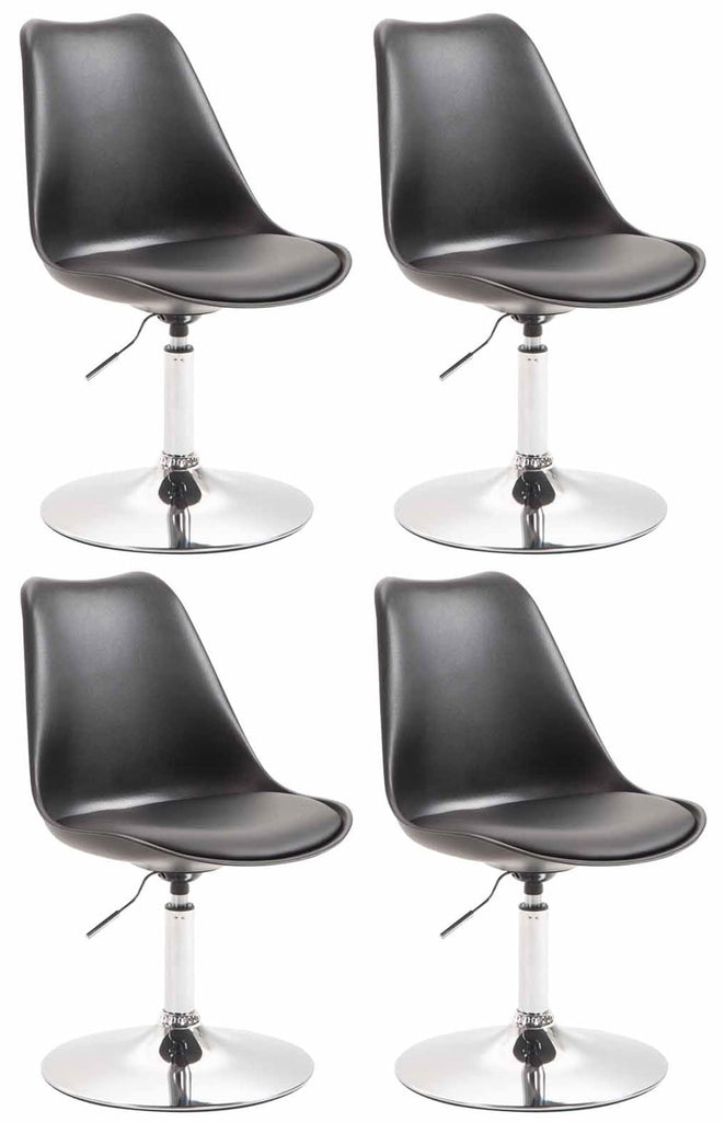 Lot de 4 chaises de salle à manger pivotante hauteur réglable en plastique noir et pied trompette métal aspect chromé 10_0001815