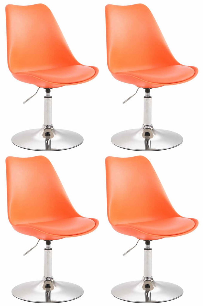 Lot de 4 chaises de salle à manger pivontante hauteur réglable en plastique orange et pied trompette métal aspect chromé 10_0001819