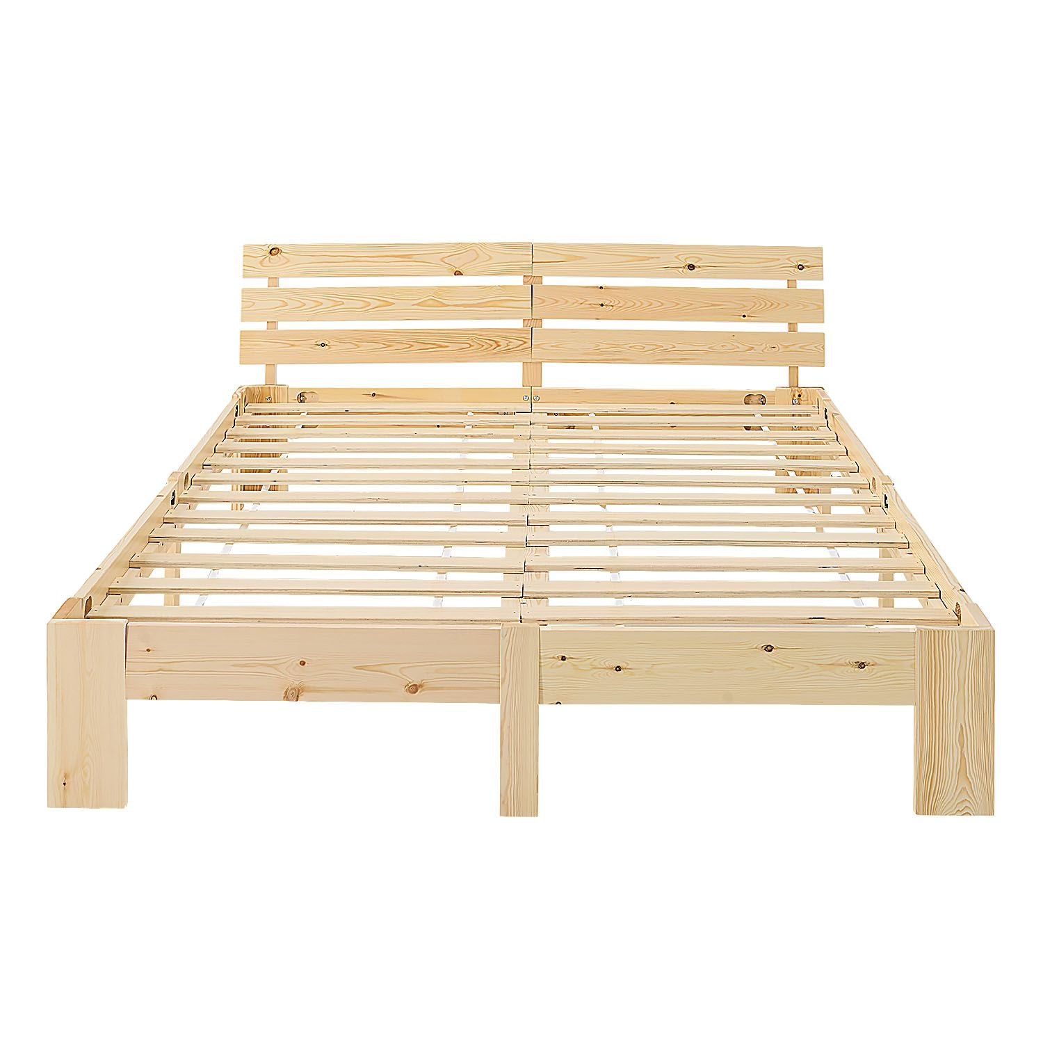 Lit en bois 160×200 cm Nature – Lit double en pin massif avec sommier.