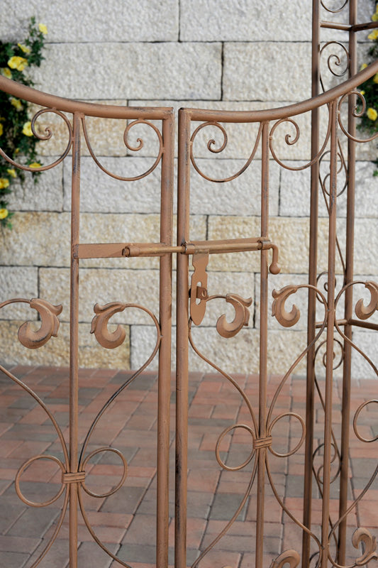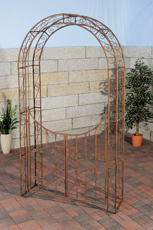 Arche treillis de jardin avec portillon support pour plantes grimpantes métal marron vieilli 10_0003944