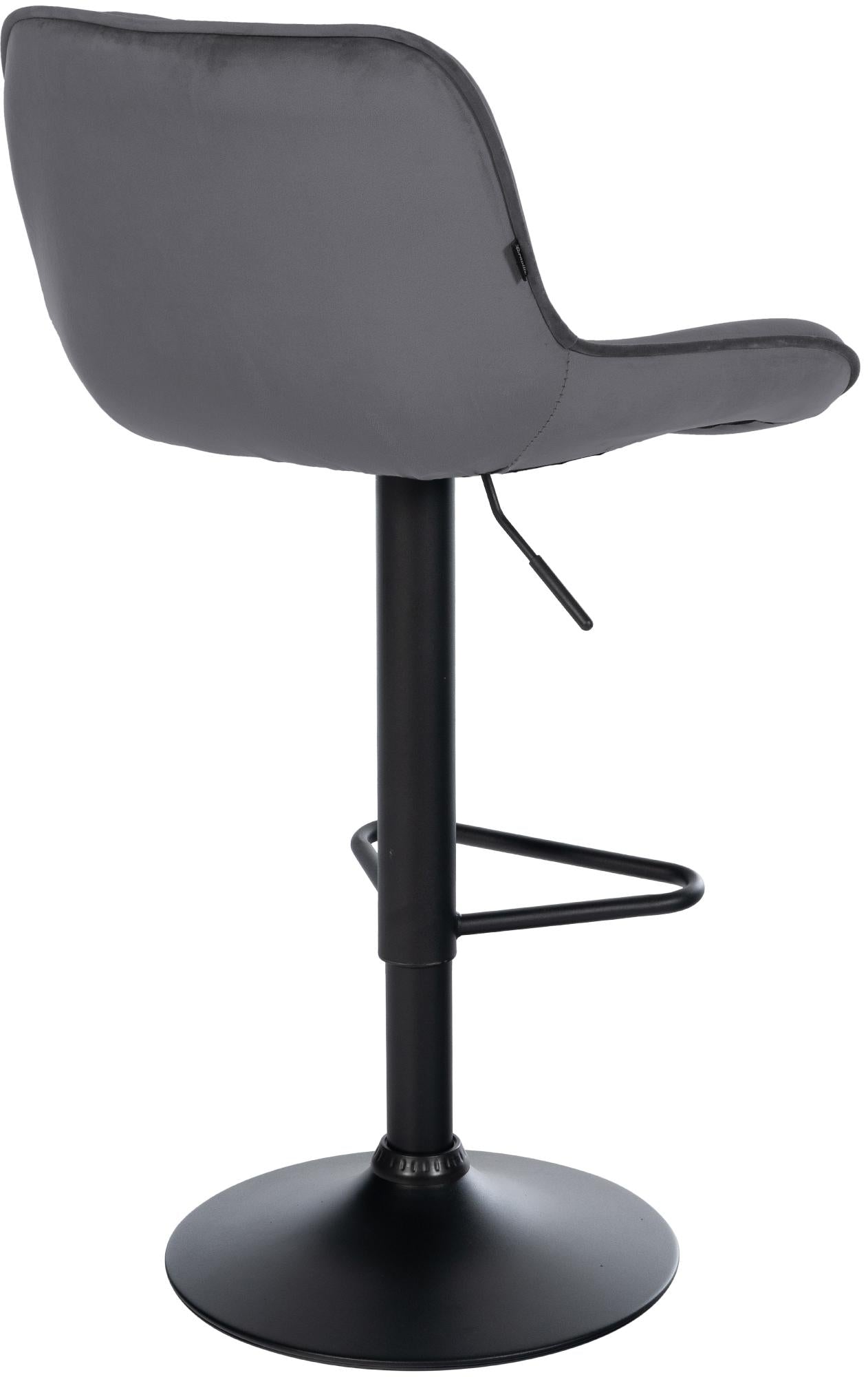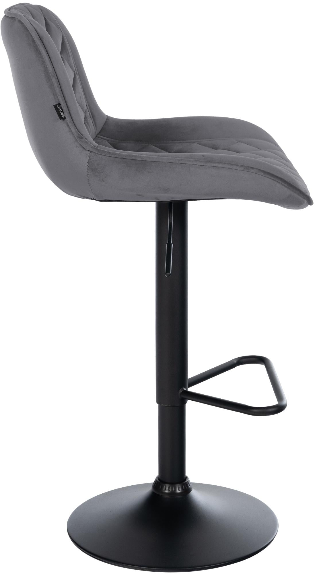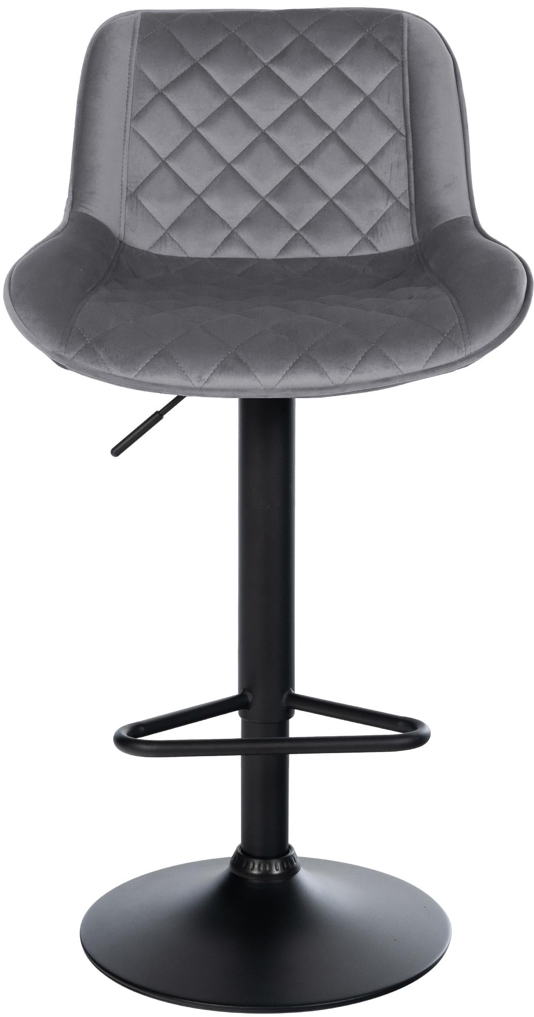 Tabouret de bar x1 repose-pieds hauteur réglable en velours gris foncé coutures losange cadre métal noir 10_0005940