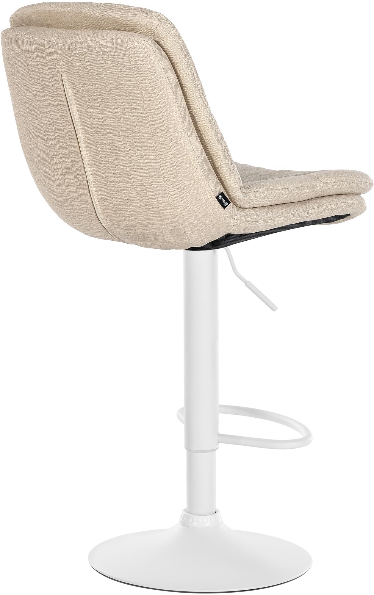 Tabouret chaise haute x1 pour cuisine et bar à assise moelleuse en tissu crème cadre en métal blanc 10_0005683