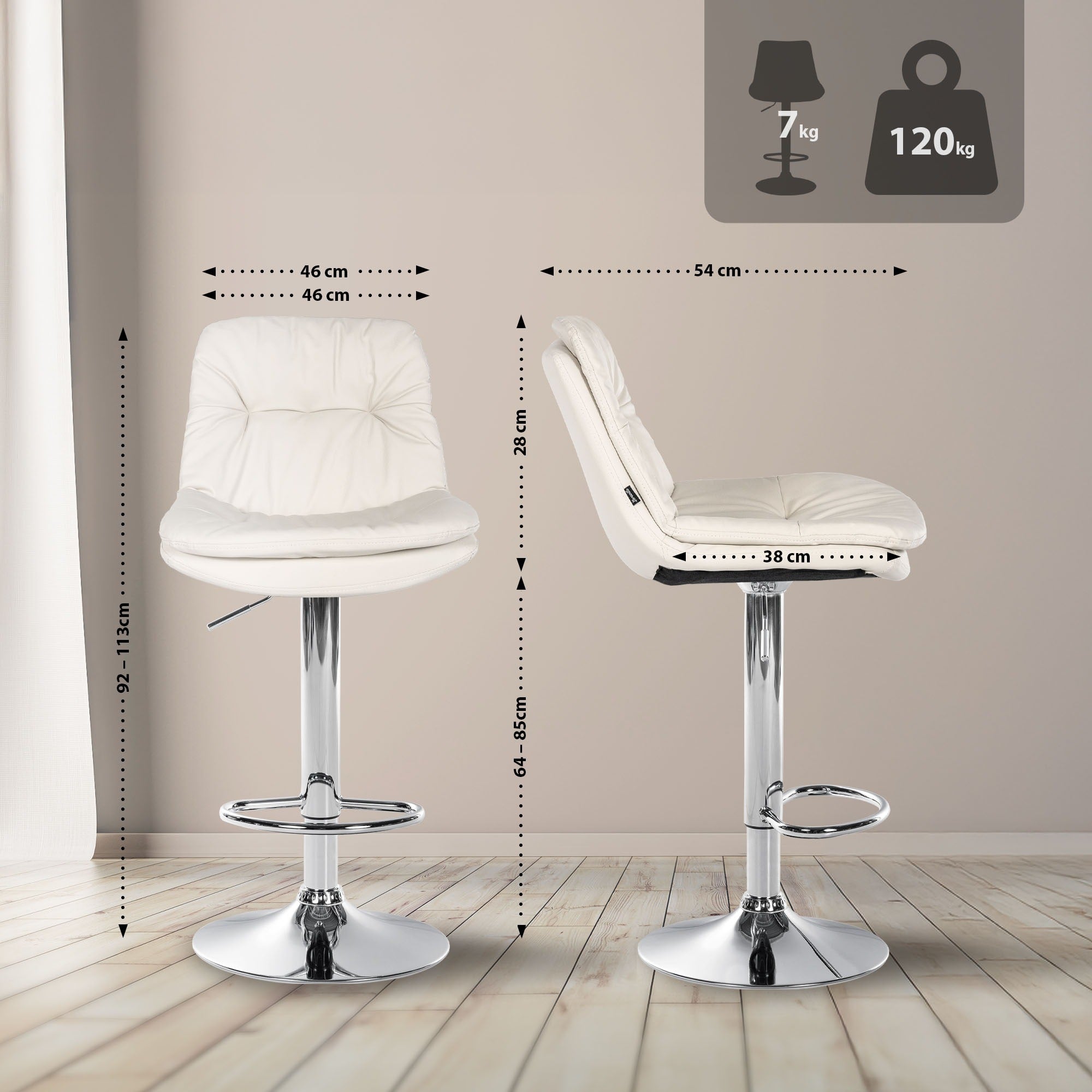 Tabouret chaise haute x1 pour cuisine et bar à assise moelleuse en similicuir blanc foncé cadre en métal chromé 10_0005799