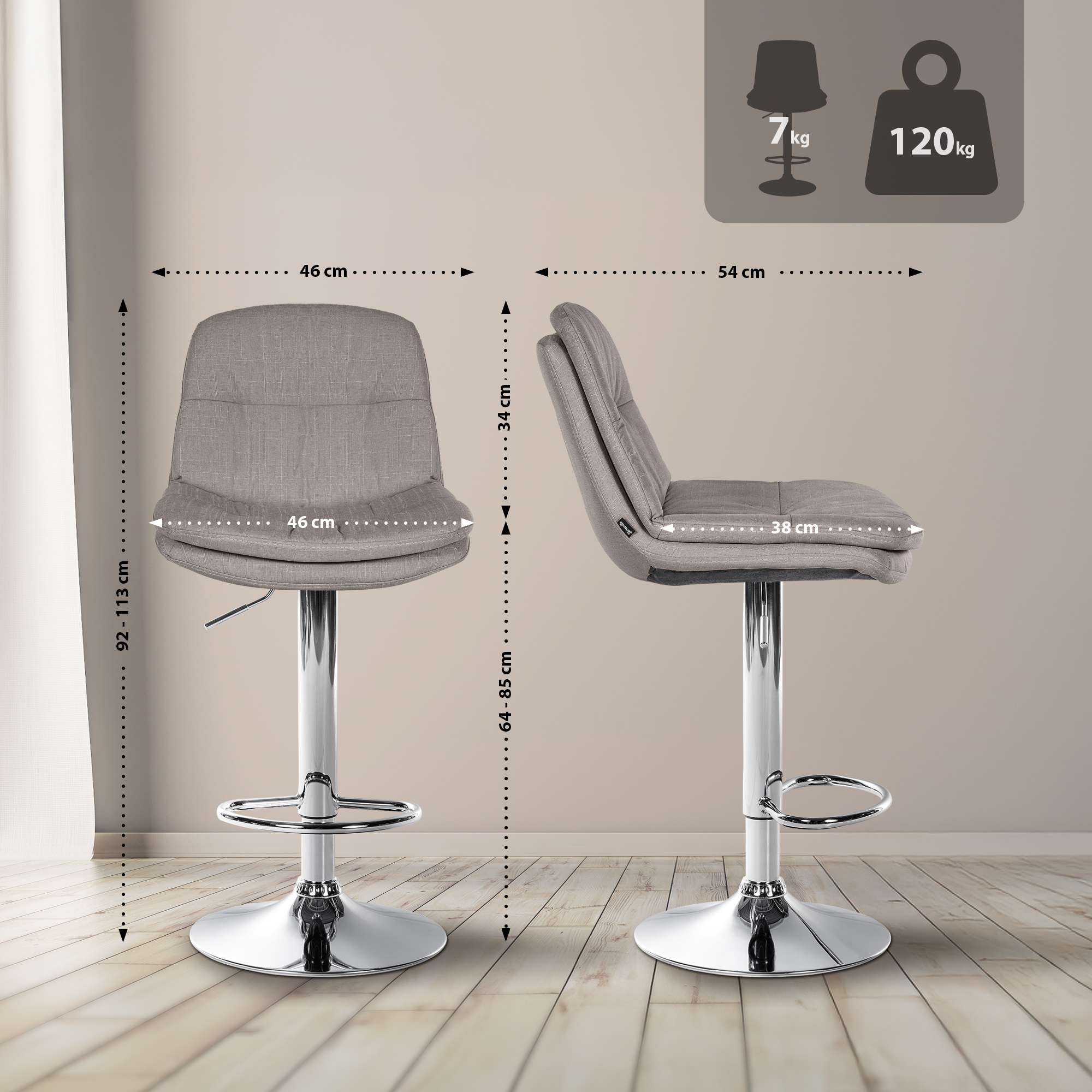 Tabouret chaise haute x1 pour cuisine et bar à assise moelleuse en tissu gris cadre en métal chromé 10_0005698