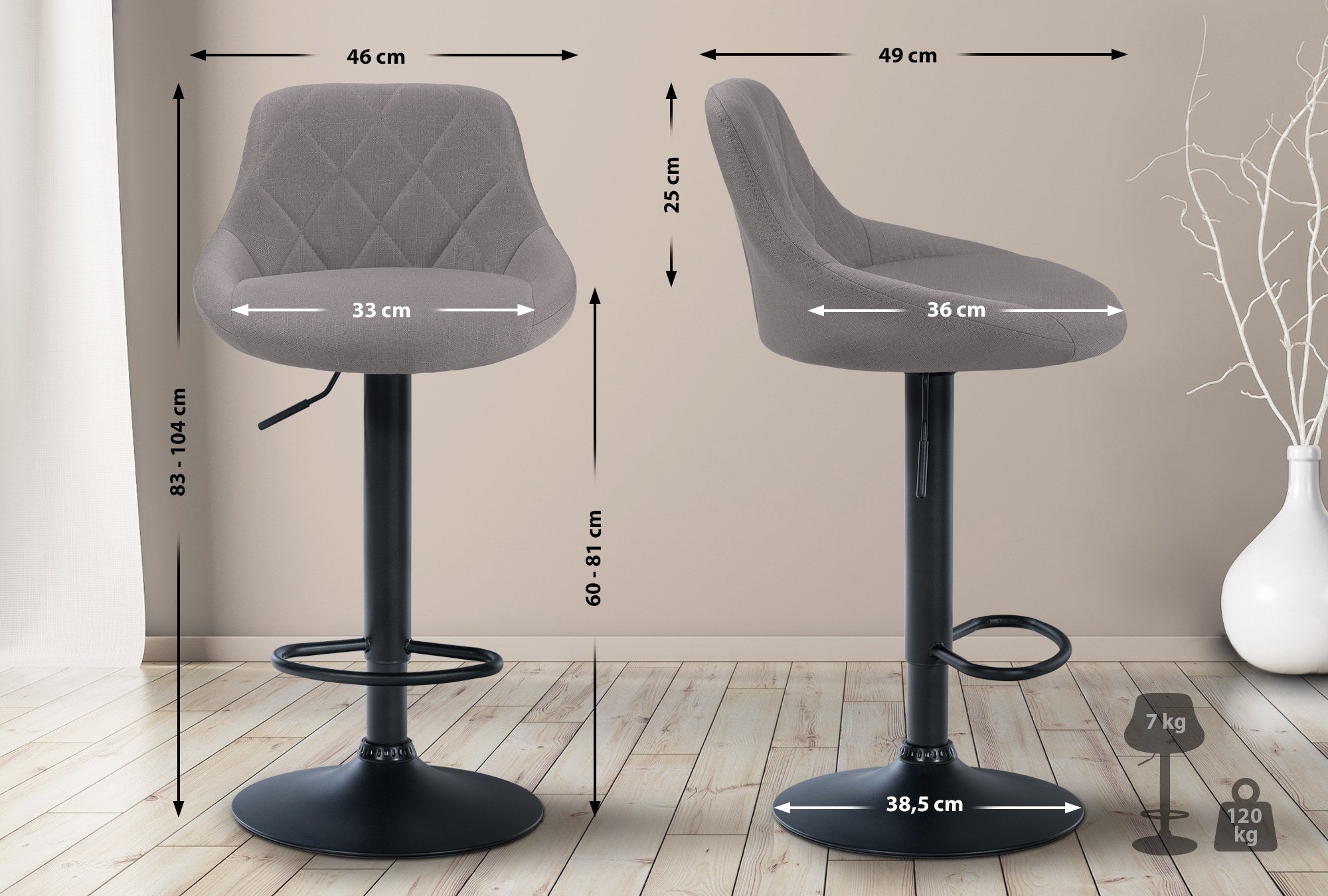 Tabouret de bar x1 pivotant hauteur réglable en tissu gris surpiqûres décoratives cadre en métal noir 10_0005835
