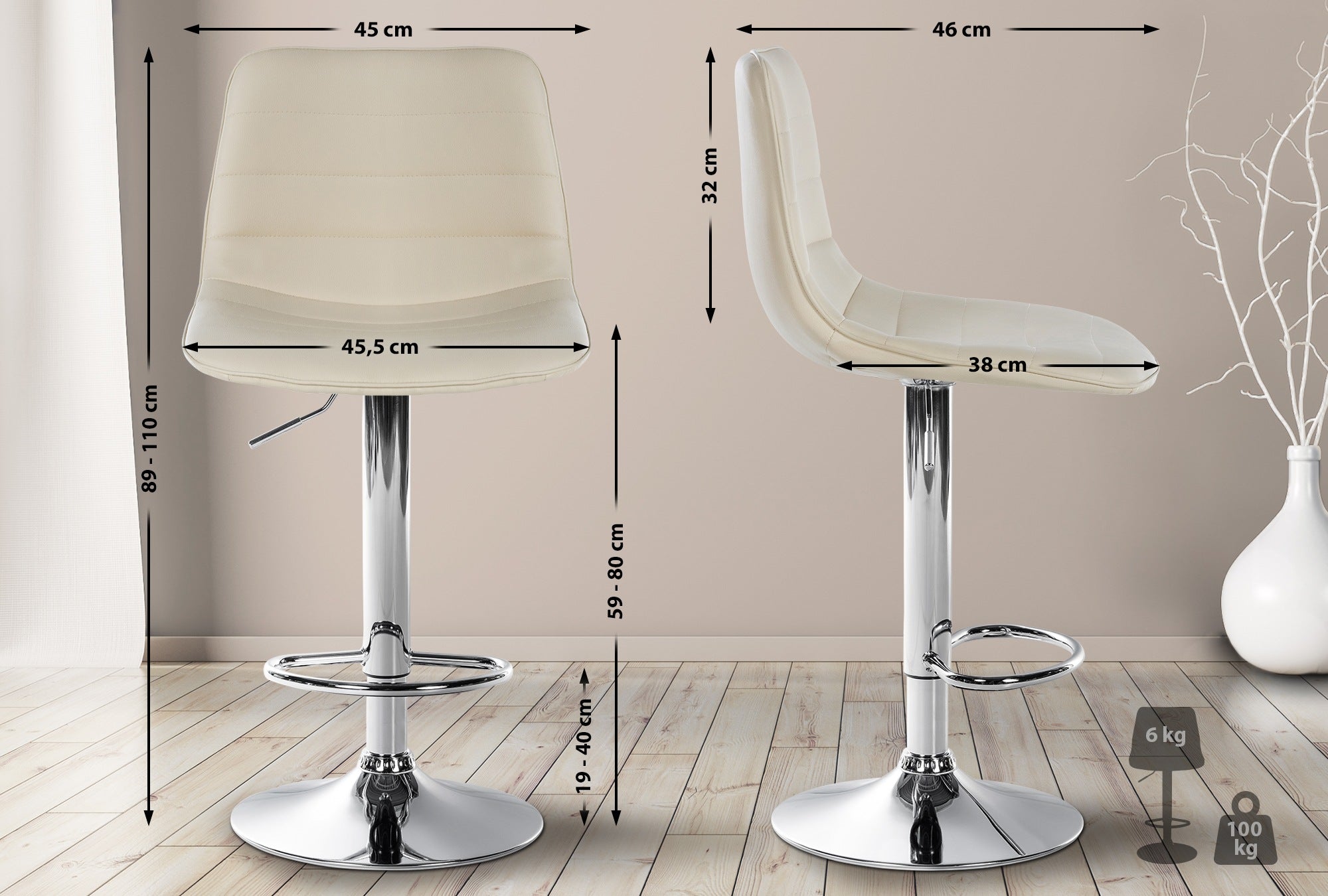 Surface d'assise (l x P) : 45,5 x 38 cm